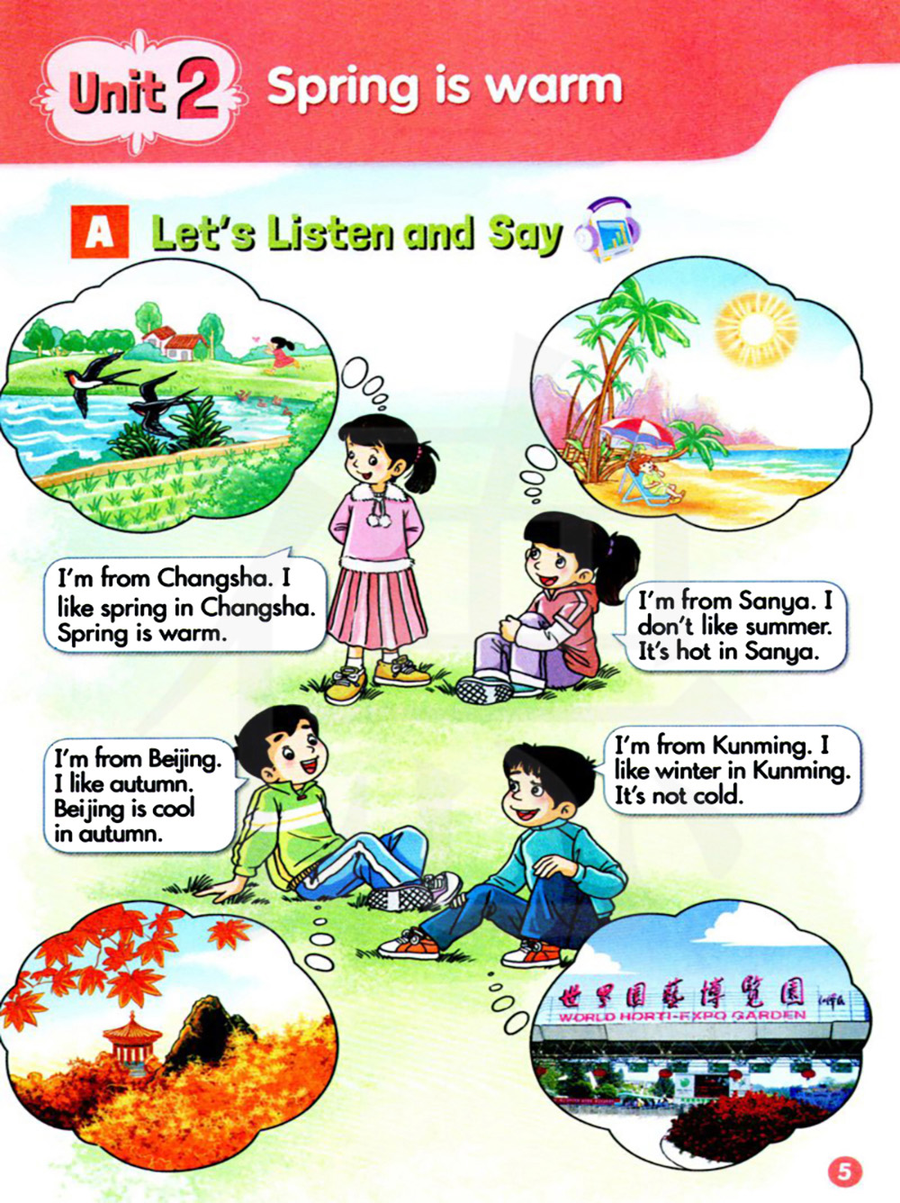 cool 凉快的 spring 春天 summer夏天 autumn秋天 winter 冬天