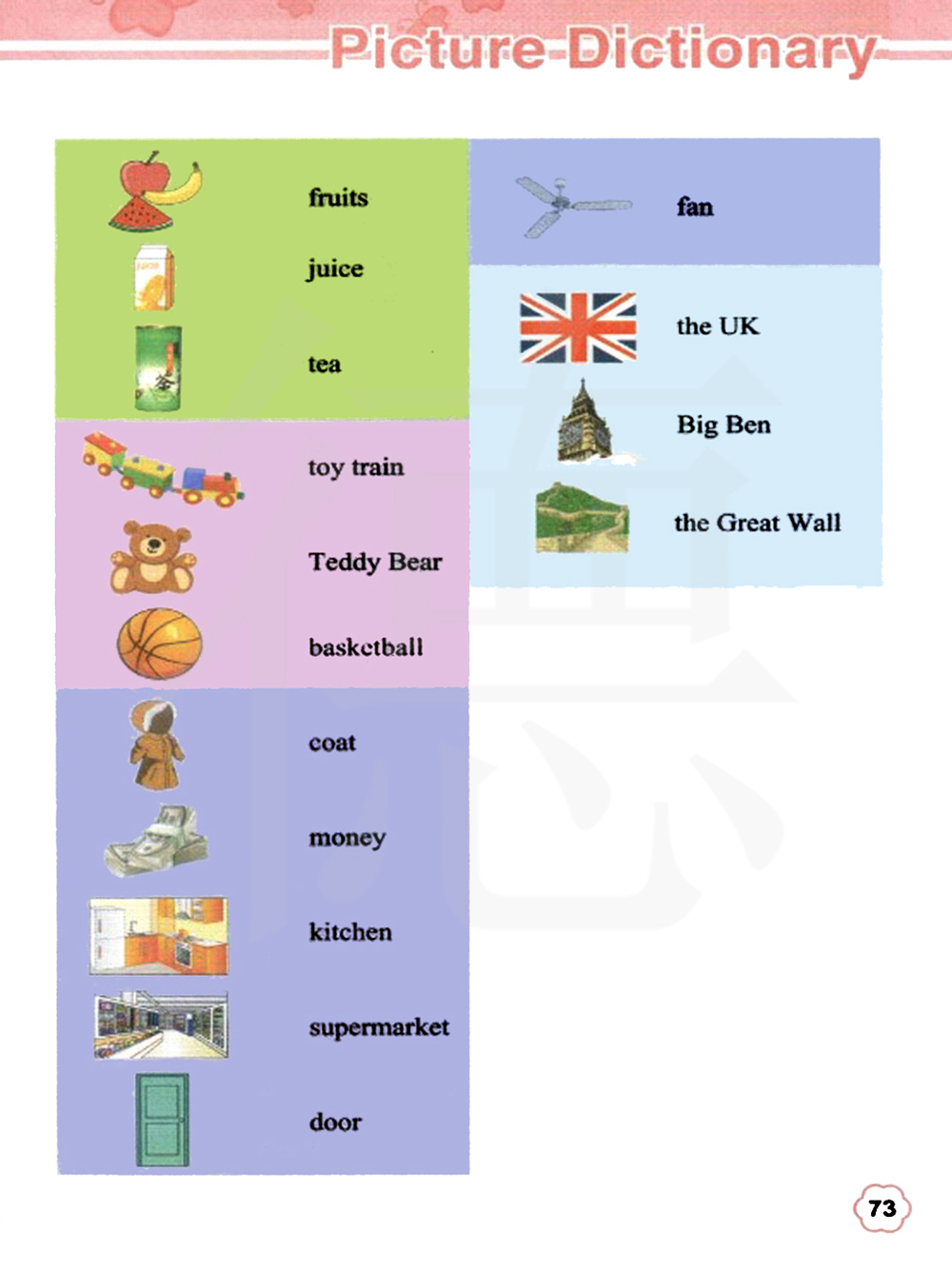 水果 果汁 茶叶 玩具火车 泰迪熊 篮球 大衣;外套 钱 厨房 超市 门