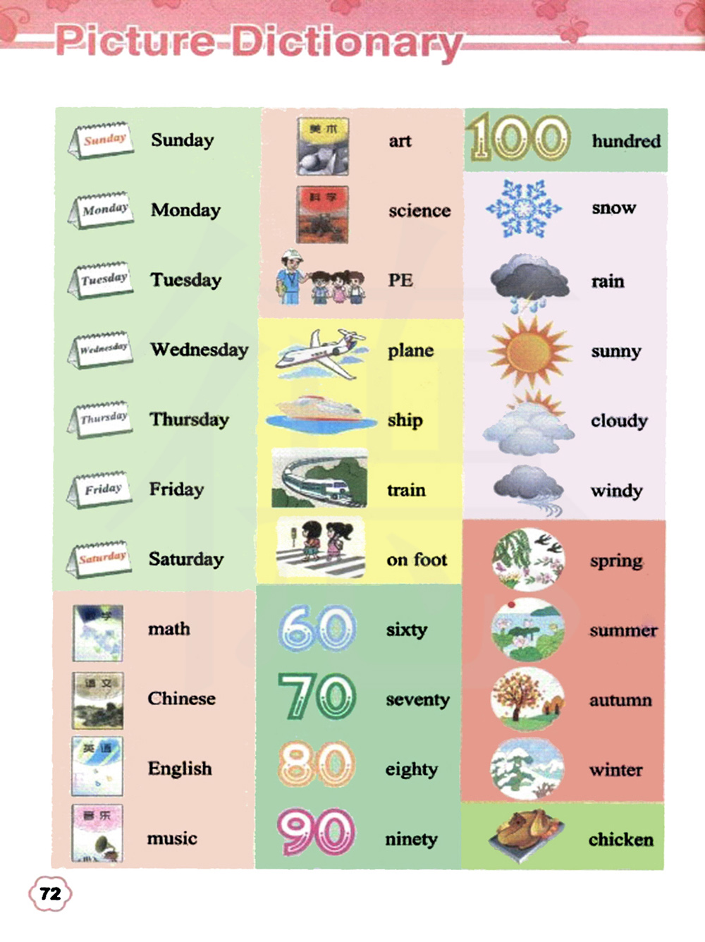星期日 星期一 星期二 星期三 星期五 星期六 数学 语文 英语 音乐