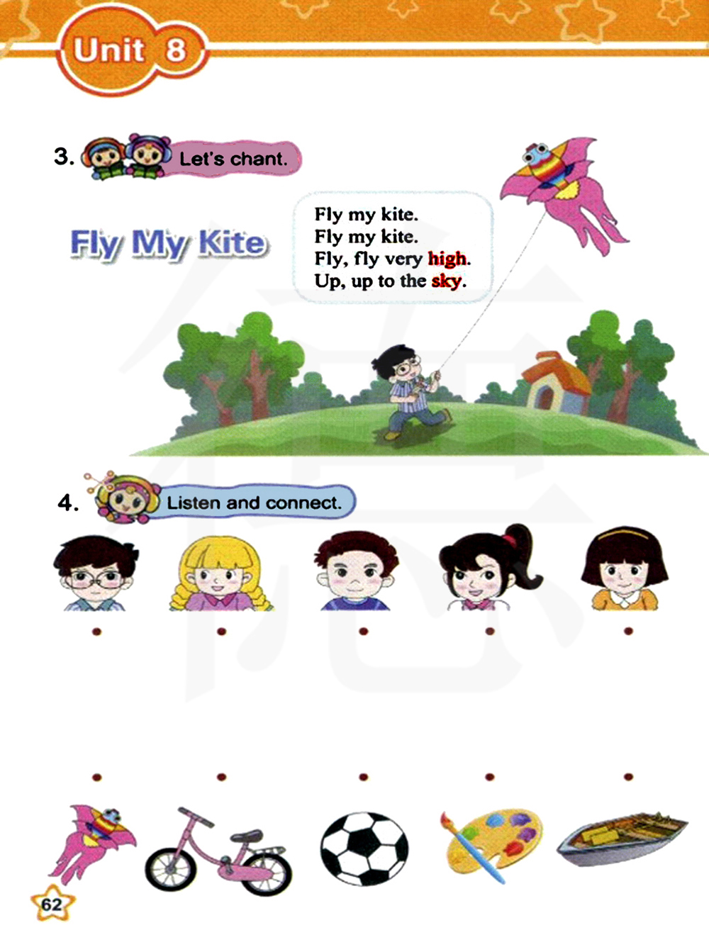 放风筝,放风筝。飞,飞得很高。上升,升到空中