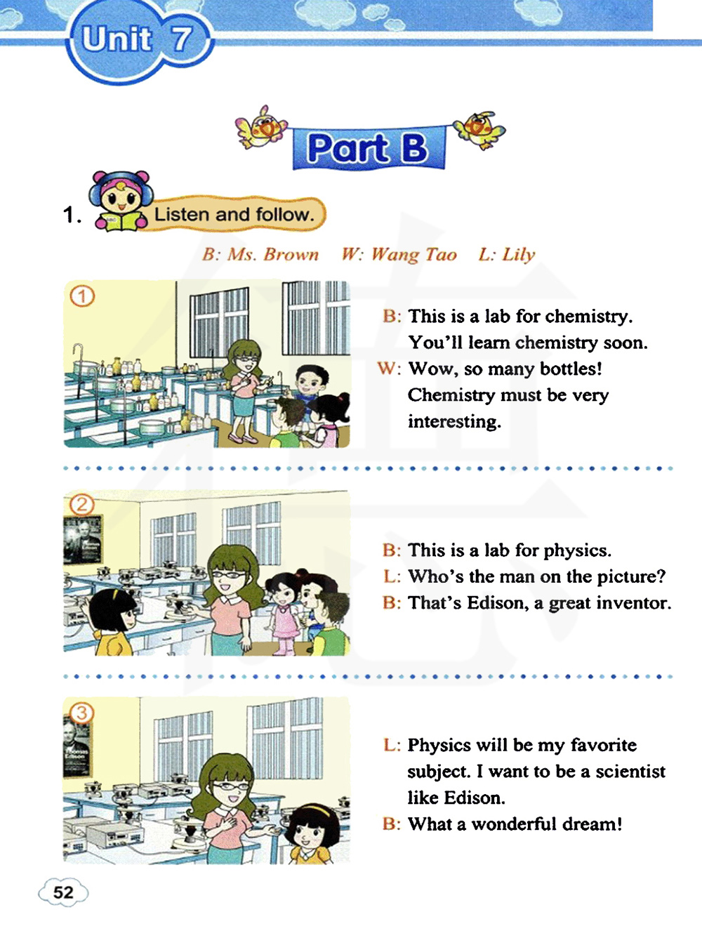 这是物理实验室。 图片上的那个男人是谁呢? 那是爱迪生,一个伟大的发明家