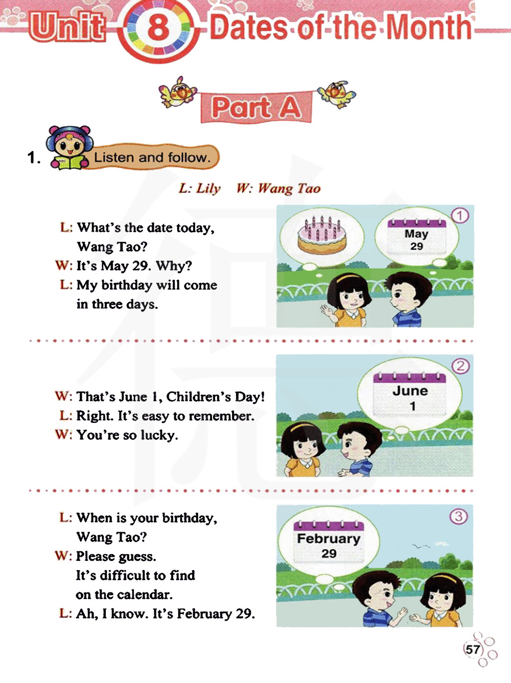 王涛,你的生日是什么时候呢?请猜一猜。很难在日历上找到。啊,我知道了。是2月29日