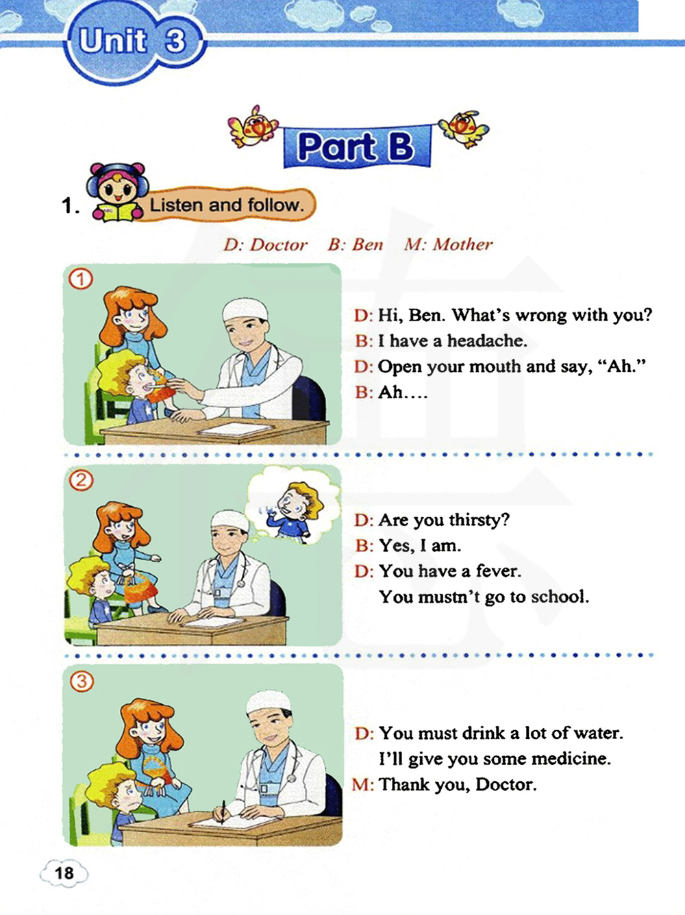 嗨,本。你怎么了?我头疼。张开嘴说,啊。 …啊……