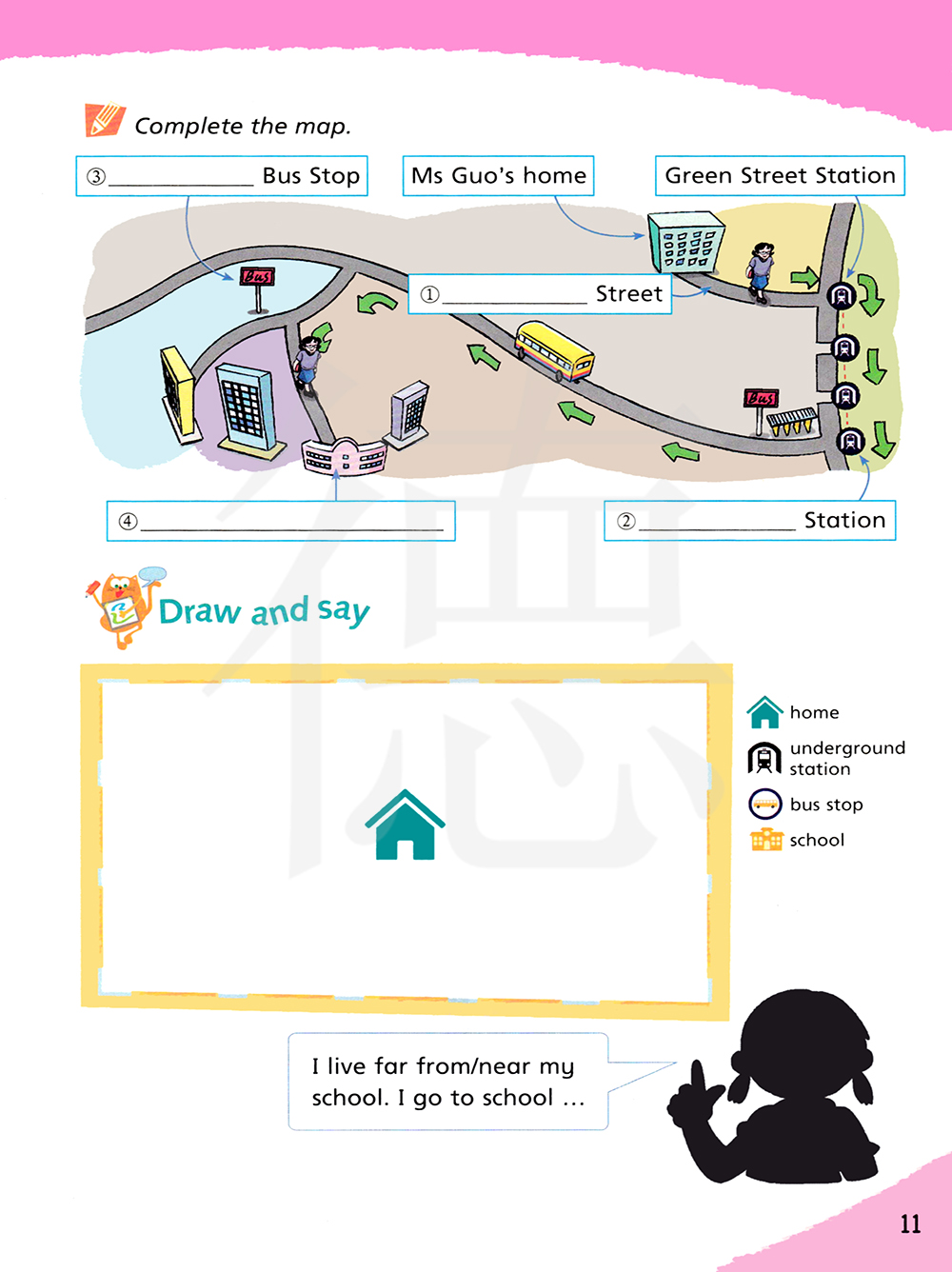 我住得离我的学校很远/很近。我去学校......