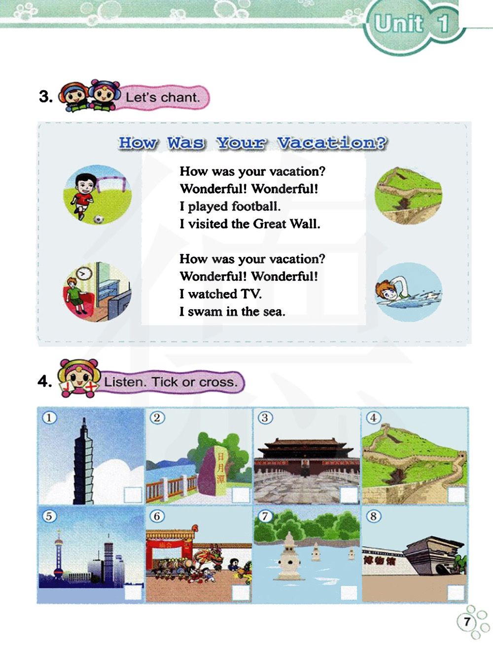 4.听录音。判断正误。