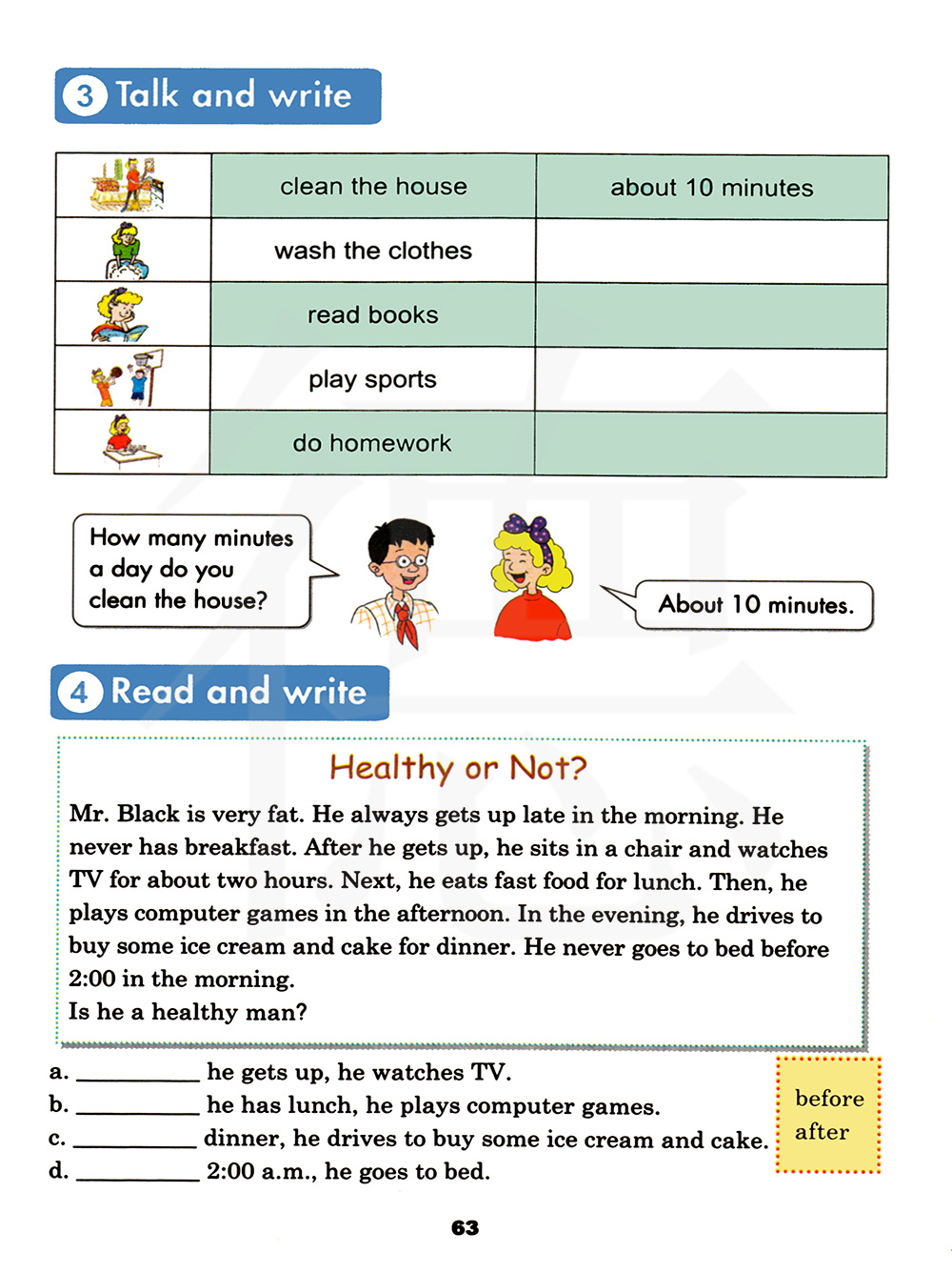 打扫屋子 洗衣服 看书 做运动 做家庭作业