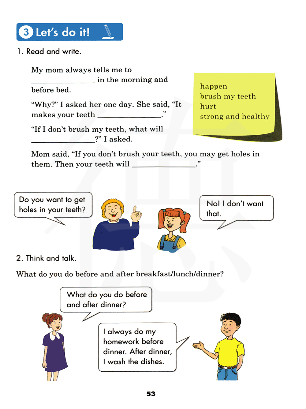 晚餐之前我总是做家庭作业,晚餐之后,我洗餐具。