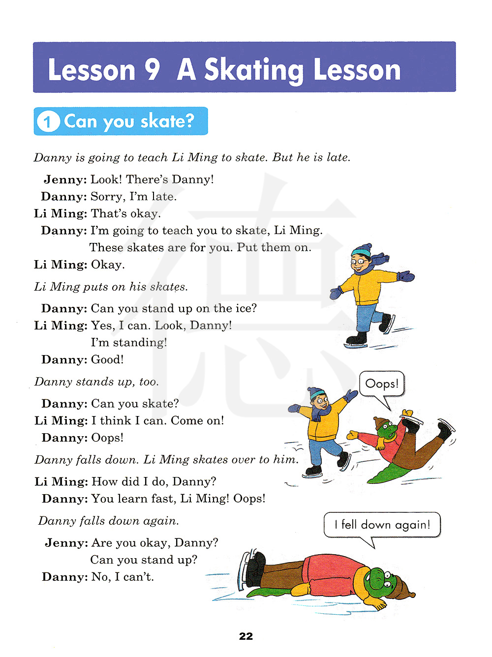 我将教你滑冰,李明。这是给你的冰鞋。穿上它们。