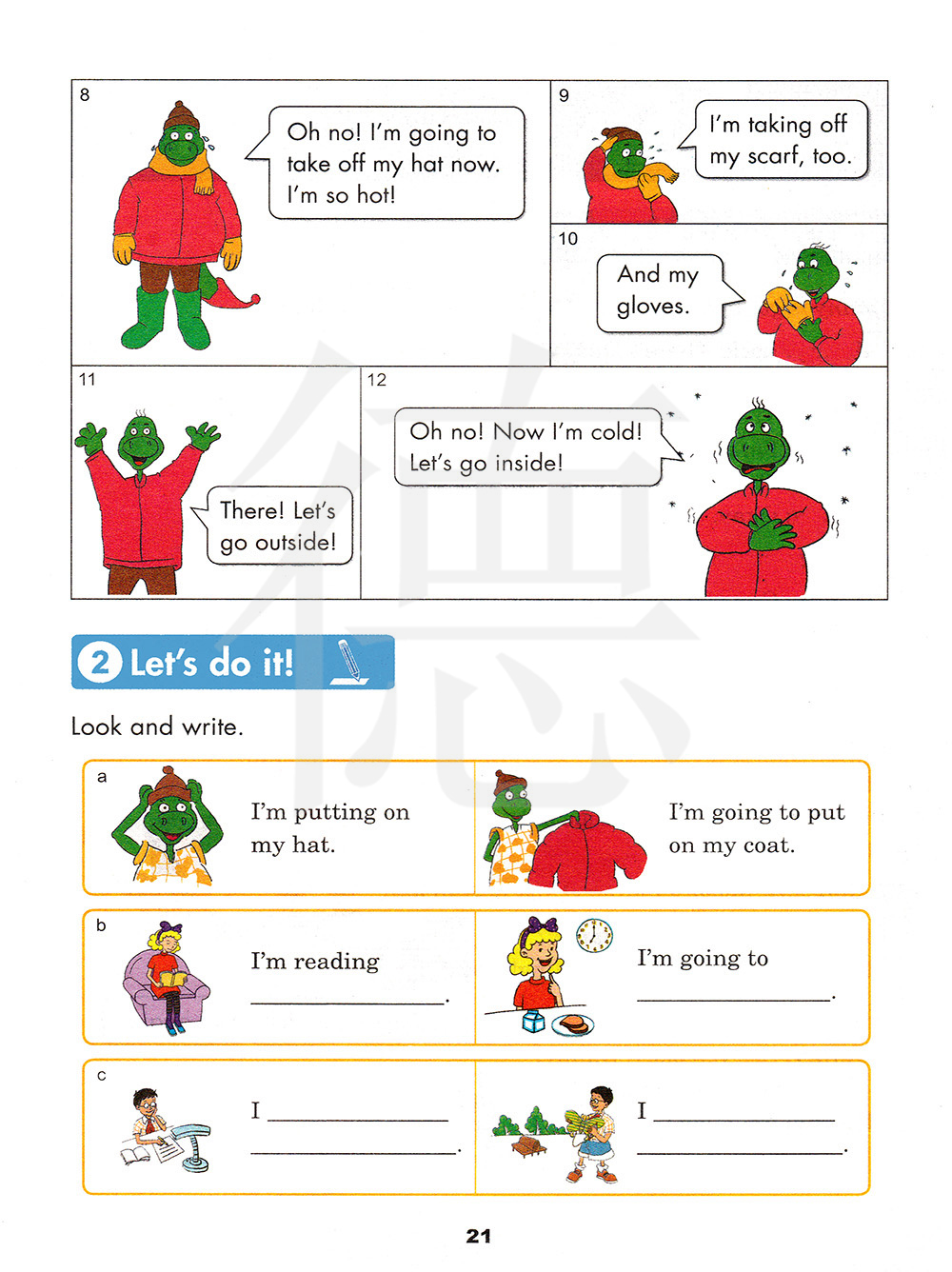 我准备穿上外套。