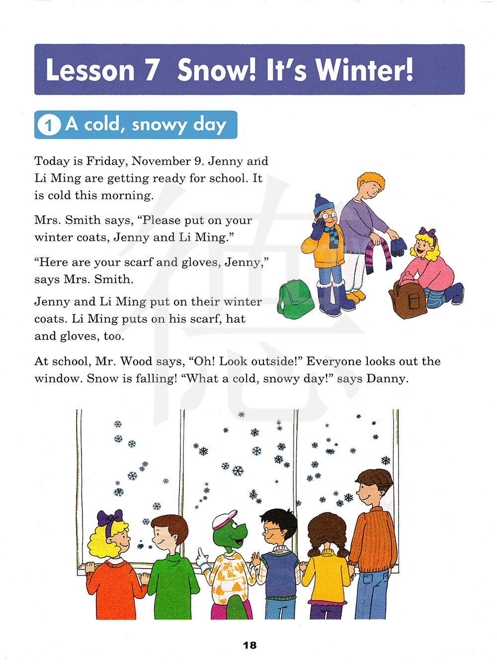 史密斯夫人说:“詹妮和李明,穿上你们的冬天的大衣。”