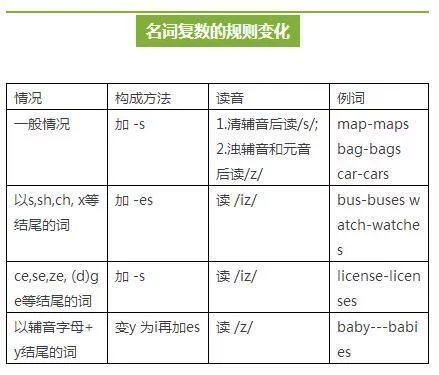 清辅音后读/s/ 浊辅音和元音后读/z/ |
