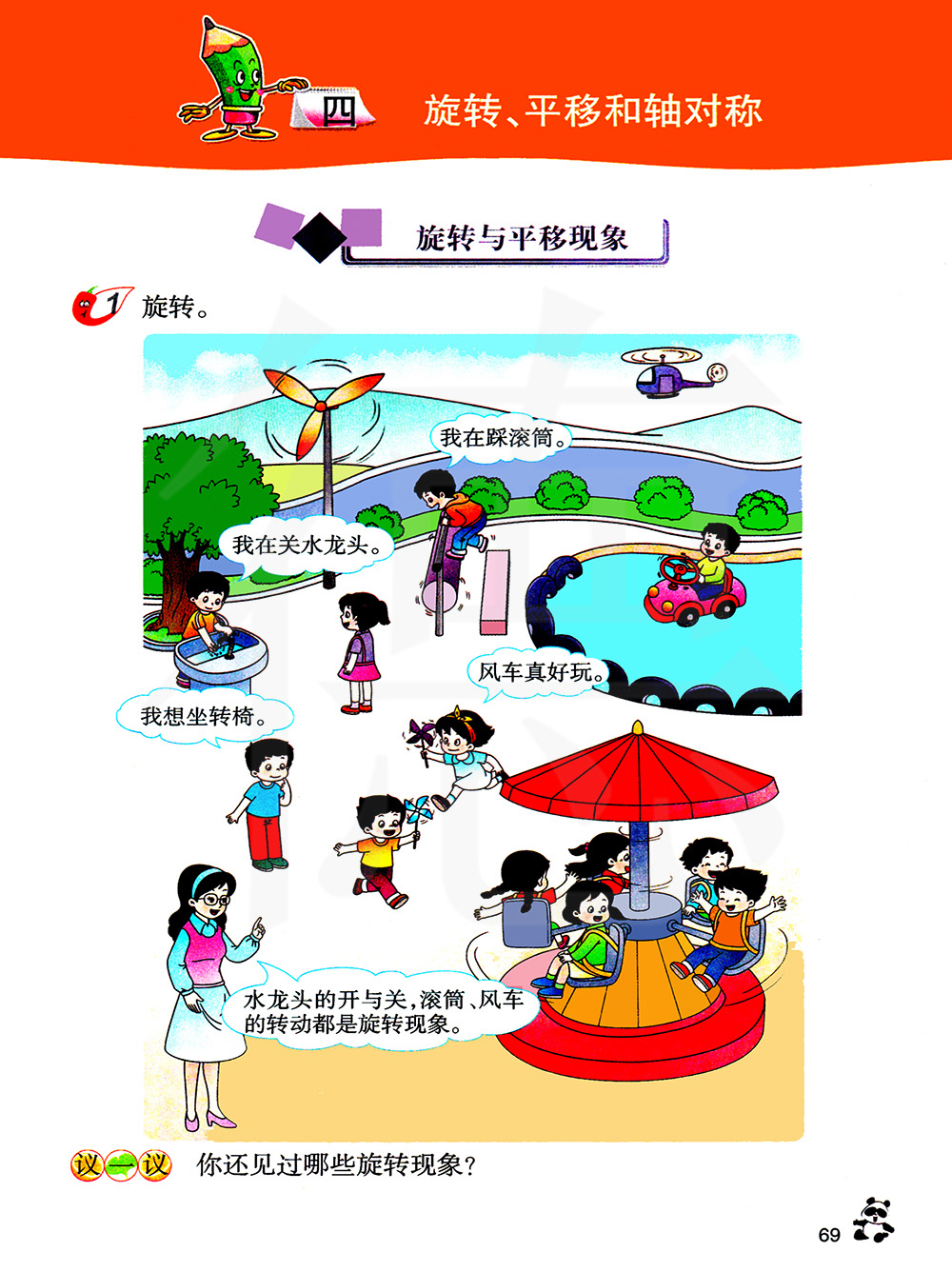 学习目标 1、结合生活经验和分类活动,初步感受平移和旋转现象,直观体会它们的特点,会正确区别这两种常见现象。 2、结合在方格纸上平移物品的操作活动,体会平移运动的过程。 重难点 重点: 1、结合生活经验和分类活动,初步感受平移和旋转现象,直观体会它们的特点,会正确区别这两种常见现象。 2、结合在方格纸上平移物品的操作活动,体会平移运动的过程。 难点: 能在方格纸上画出一个简单图形沿水平方向、竖直方向平移后的图形。
