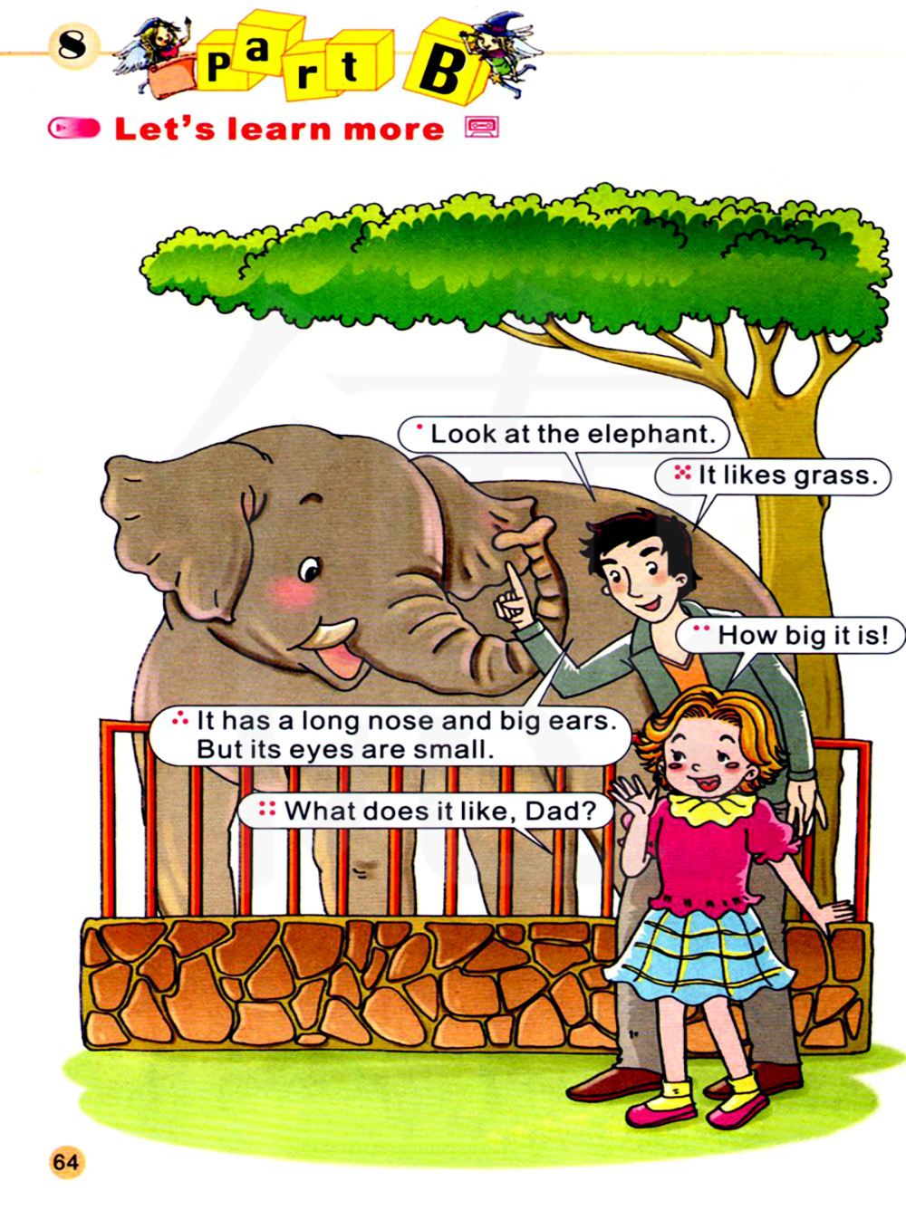 它有一条长鼻子和大耳朵,但是它的眼睛很小。