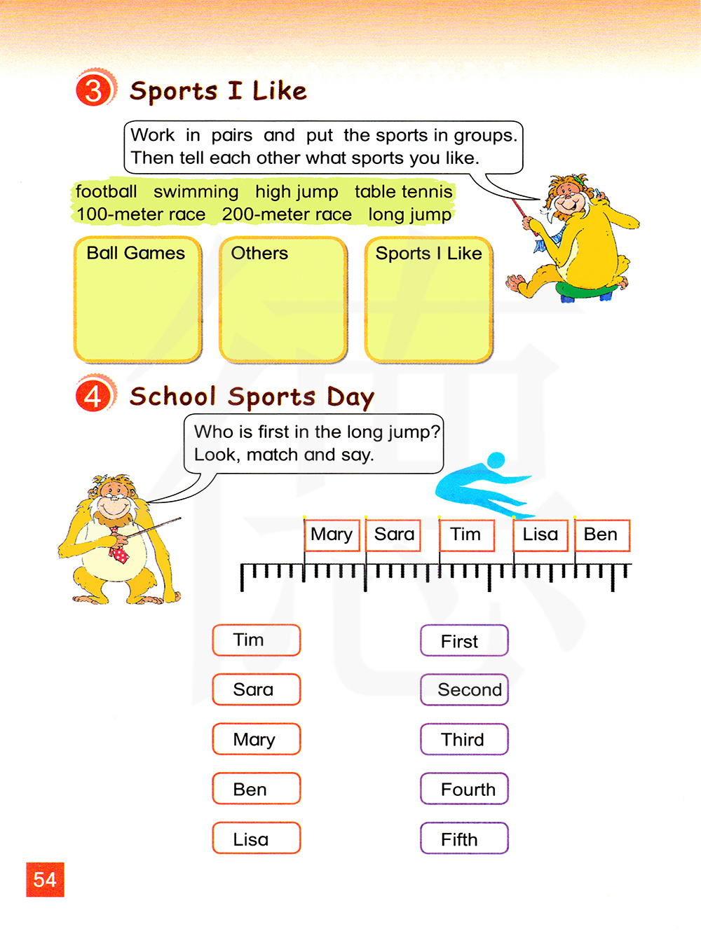 结对练习并将这些运动分组。然后互相讲述你们喜欢的运动。