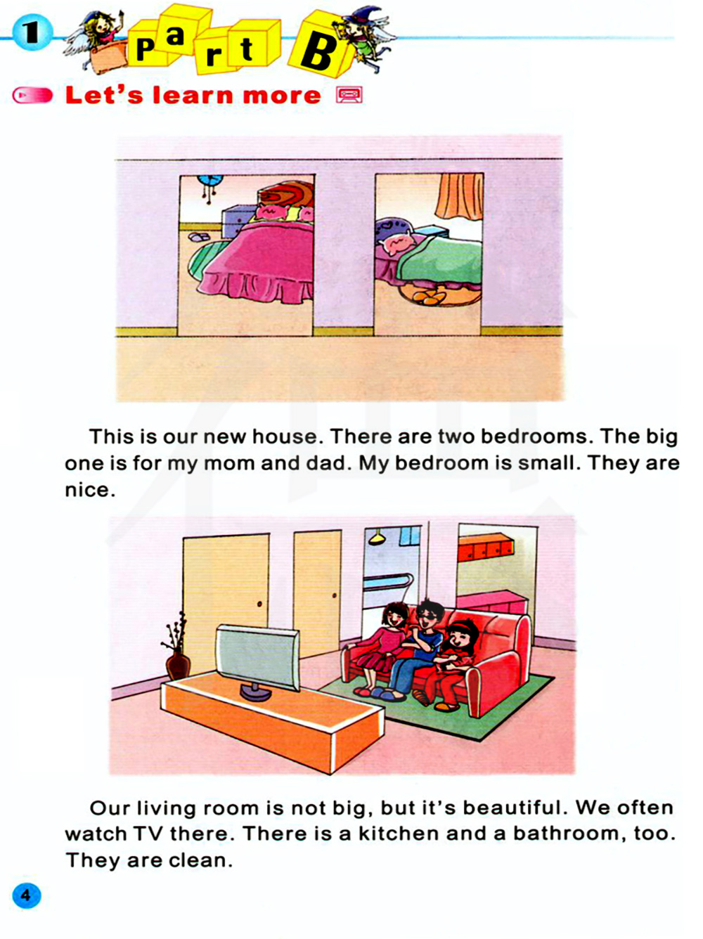 这是我们的新房子。有两间卧室。大的那间是给爸爸妈妈的。我的卧室是小的。它们都很好。