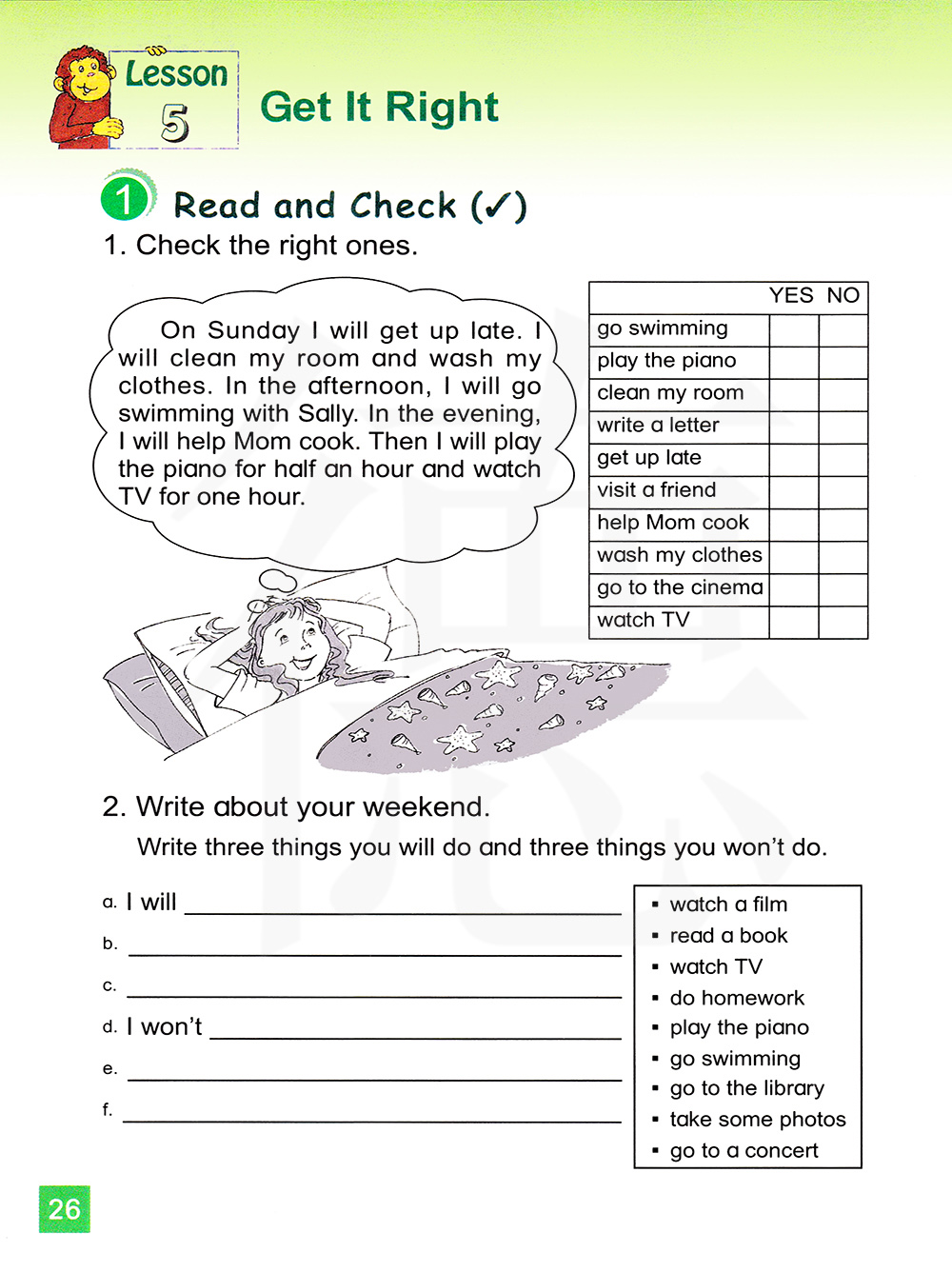 去游泳 弹钢琴 打扫我的房间 写一封信 起床迟