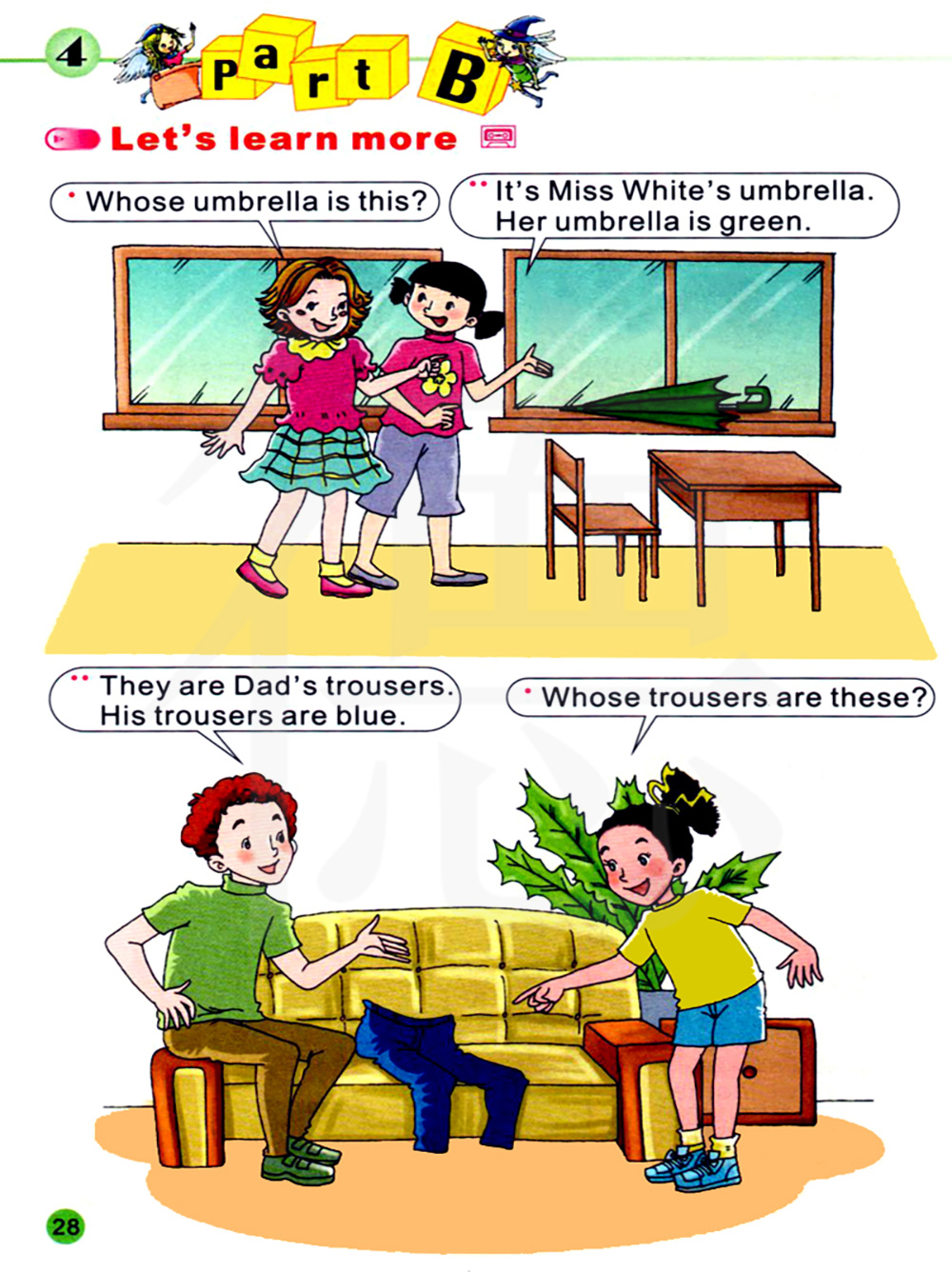 是爸爸的裤子。他的裤子是蓝色的。
