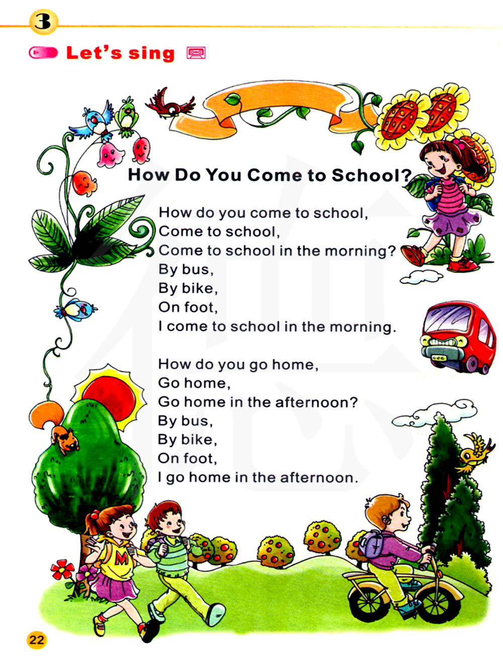 你怎么来学校?来学校,早上来学校?乘公交车,骑自行车,步行,我在早上来学校。你怎么回家,回家,下午回家?乘公交车,骑自行车,步行,我在下午回家。