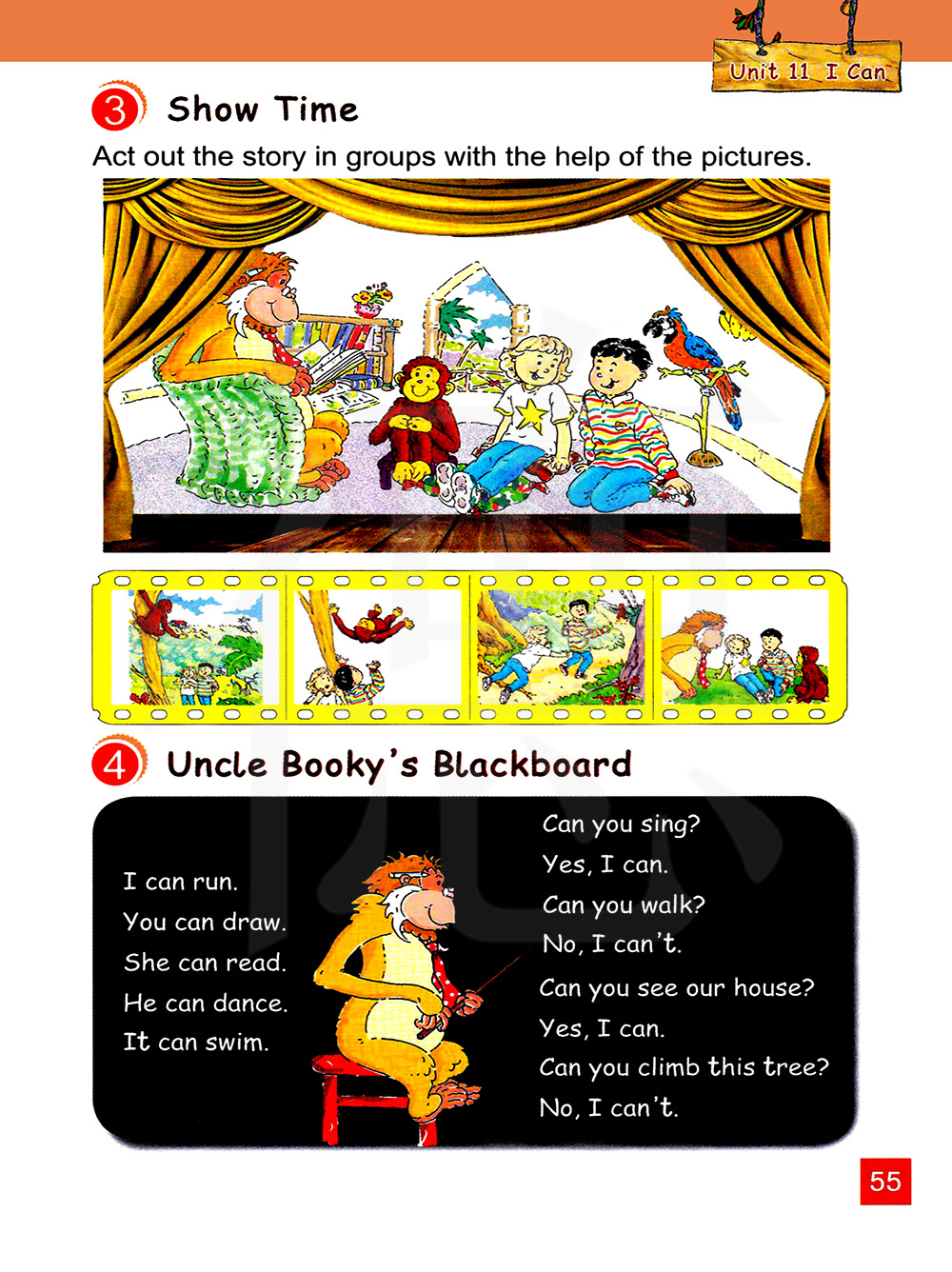 她会读,他会跳舞,它会游泳。
