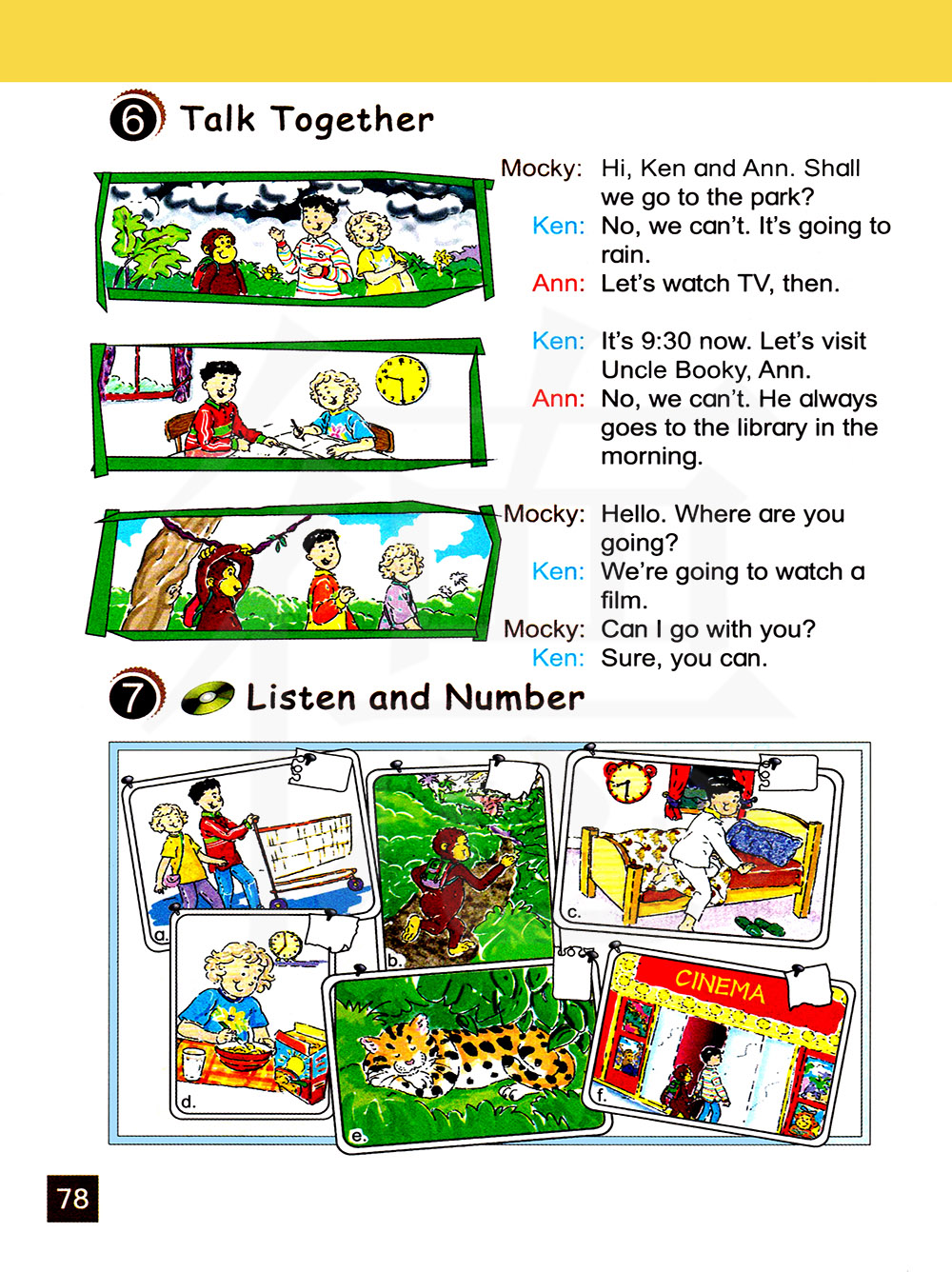 嗨,肯和安。我们去公园好吗?不,我们不能去公园。要下雨了。那让我们看电视吧。