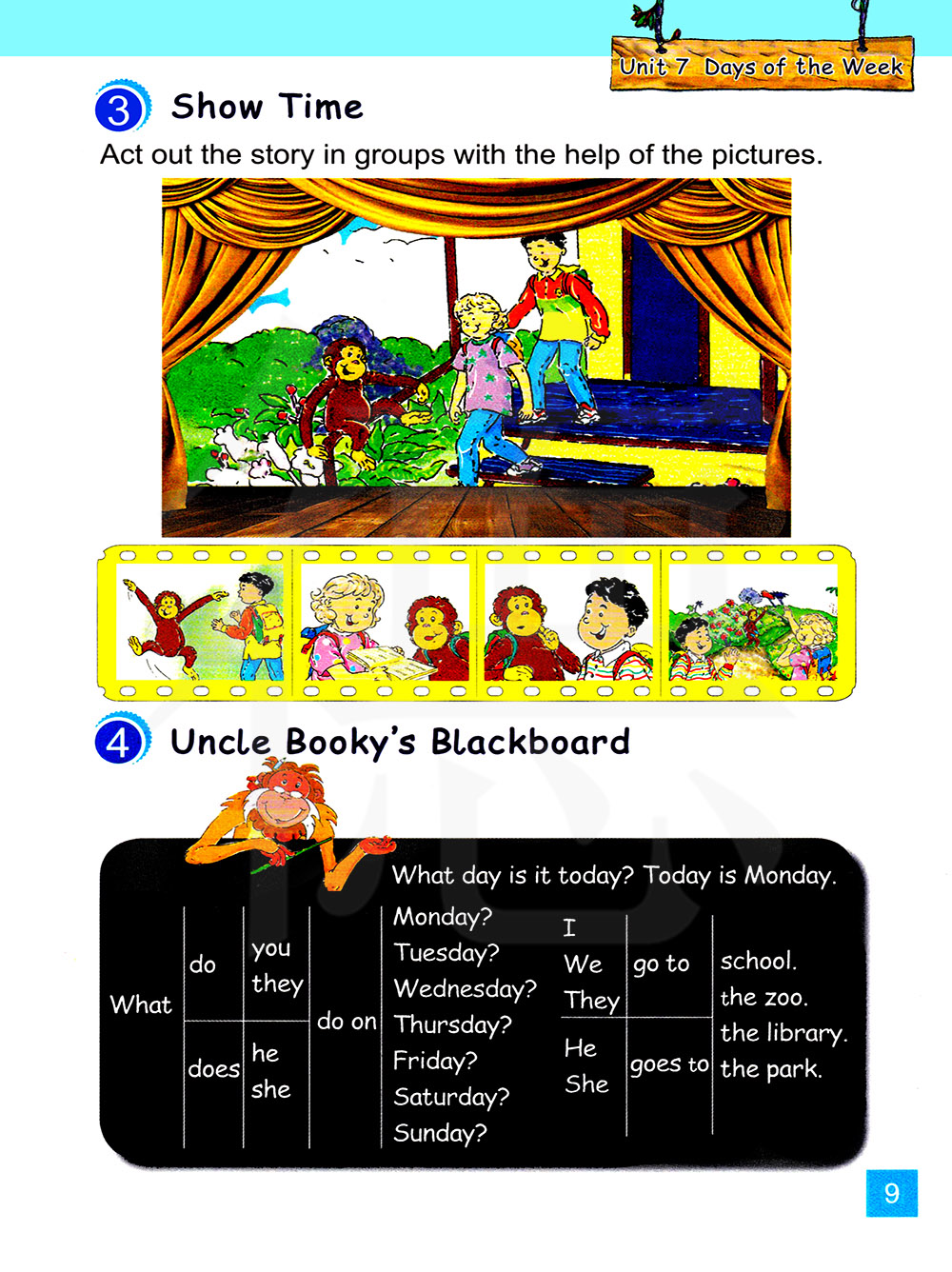 你星期一做什么?他们星期二做什么?他星期三做什么?她星期四做什么?你星期五做什么?他们星期六做什么?他星期日做什么?