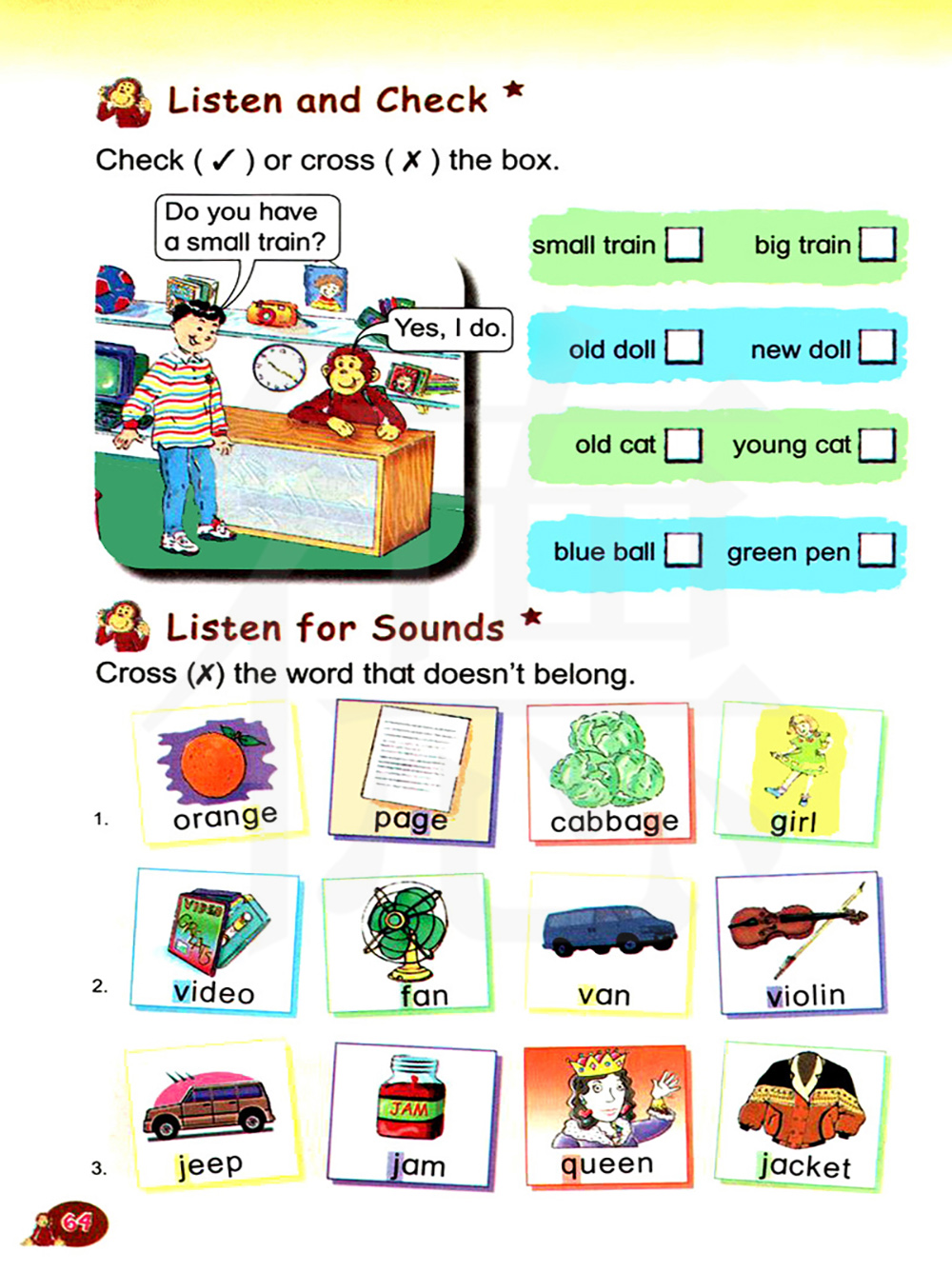 给发音不属于同一类的单词打叉