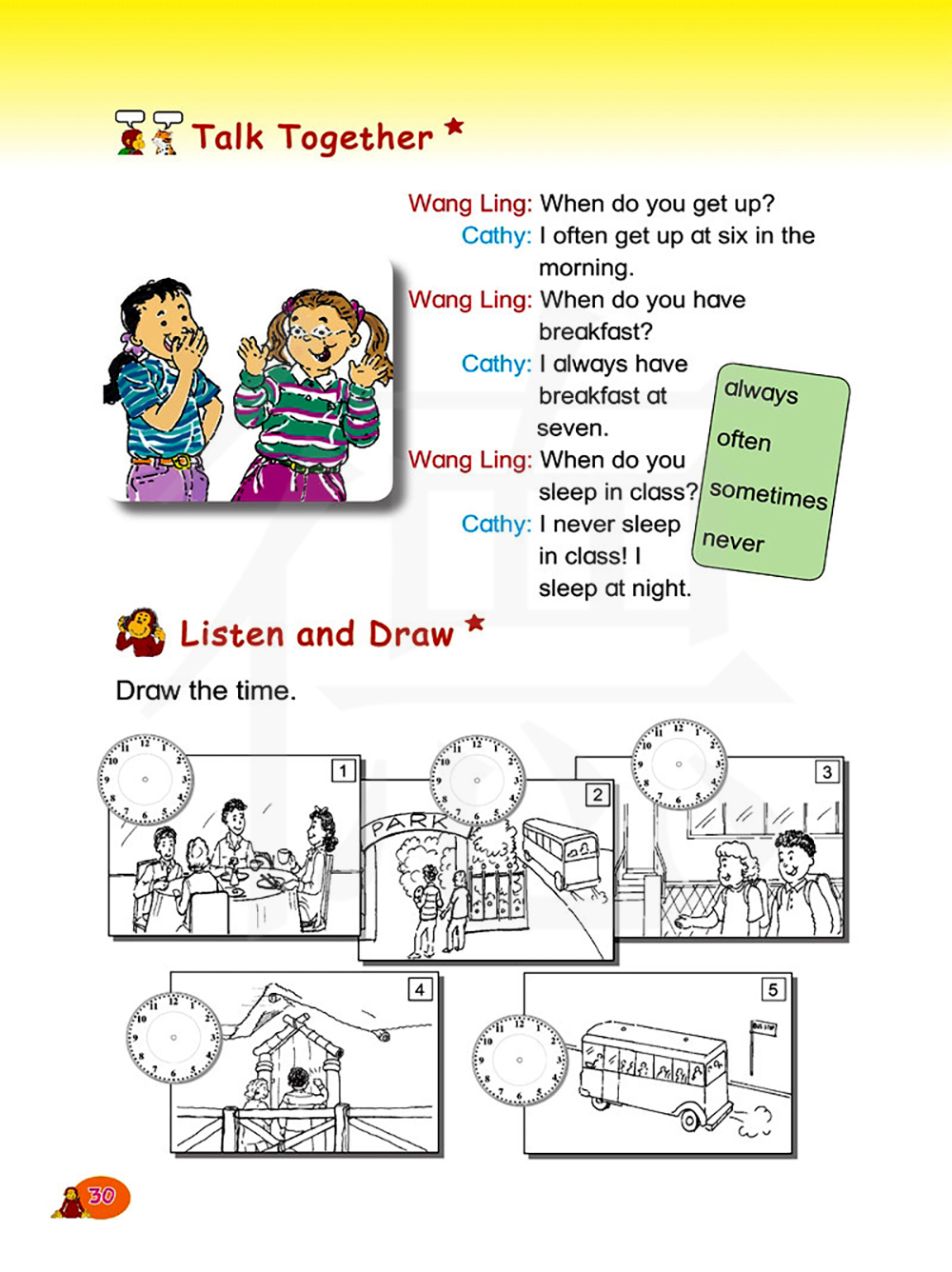 你什么时候在课堂上睡觉? 我从来不在课堂上睡觉。我在晚上睡觉。