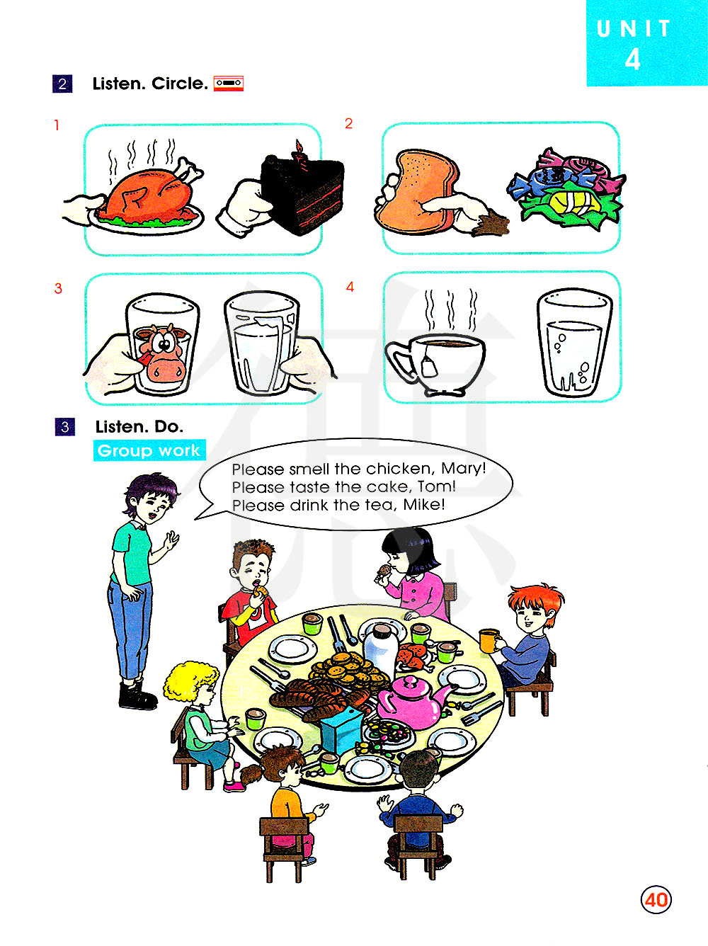 请闻一闻鸡肉,玛丽!请品尝蛋糕,汤姆!请喝茶,迈克!