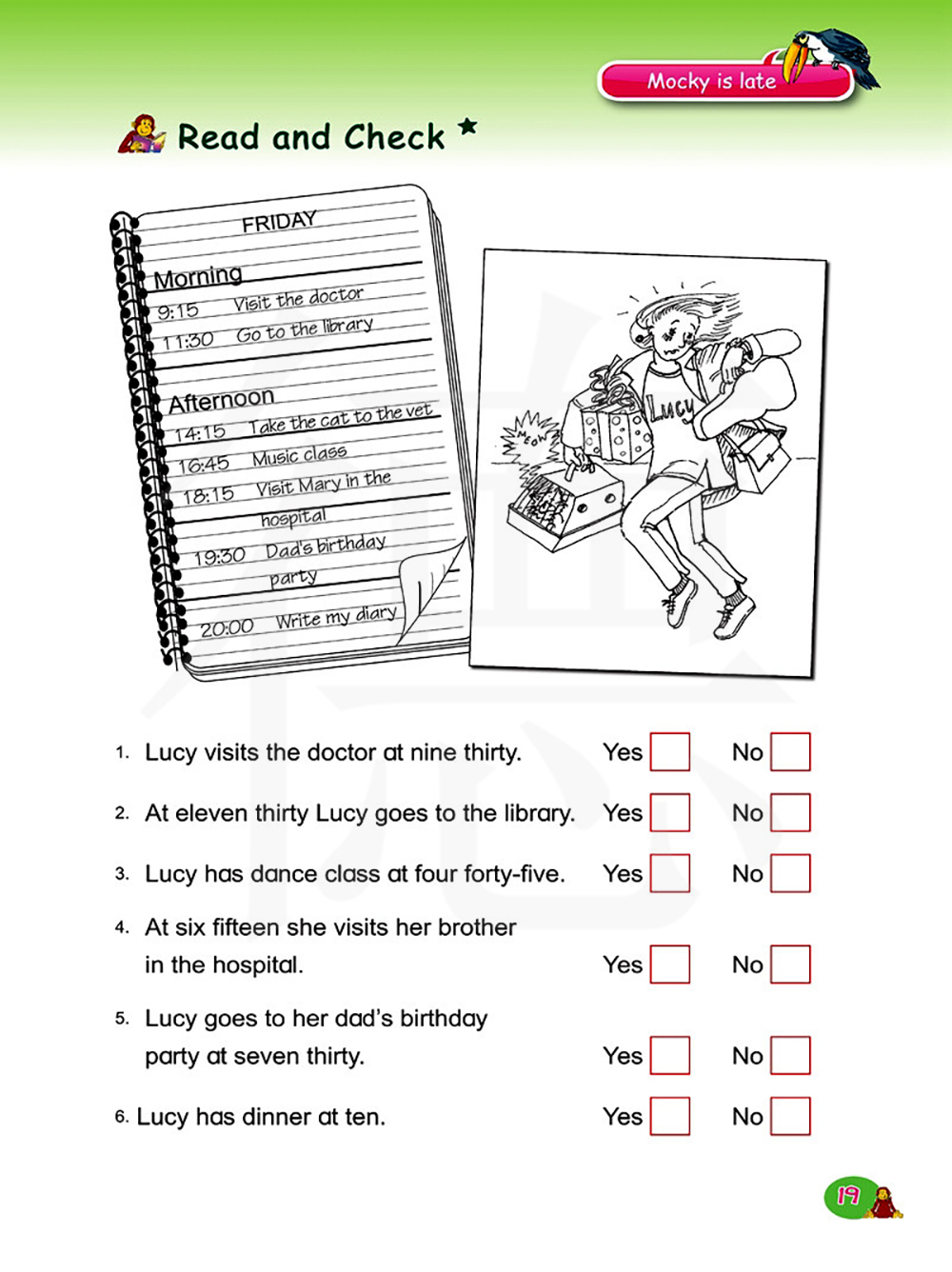 四点四十五分 音乐课 六点十五分 看望医院里的玛丽