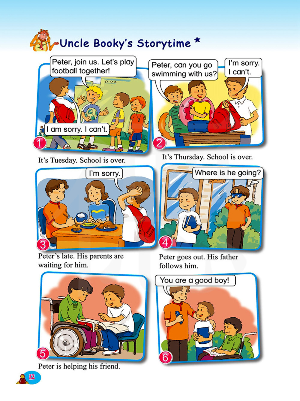 彼得,你能和我们一起去游泳吗? 对不起,我不能去。