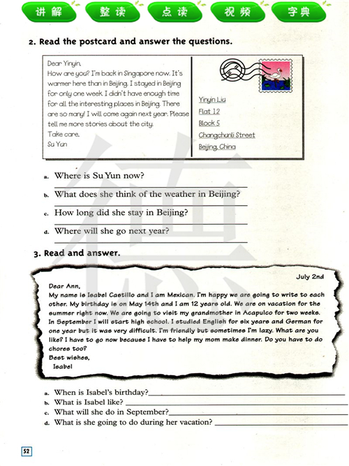 我叫Isabel Castillo,我是墨西哥人,我很高兴我们可以互相写信。我的生日是5月14日,我12岁了。我们现在过暑假。我们准备拜访在阿卡普尔科的奶奶两个星期。九月,我将上中学了。我学了六年的英语,一年的德语,但是德语很难。我很友好,但有时有很懒。你性格怎么样?我现在不得不走了,因为我要帮我妈妈做晚饭了。你也必须做家务吗?最美好的祝愿 伊莎贝尔