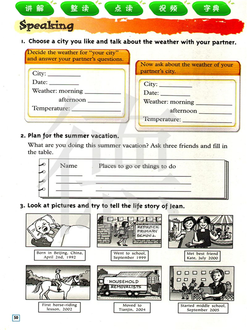 你今年暑假准备做什么?问三个朋友,然后填表。