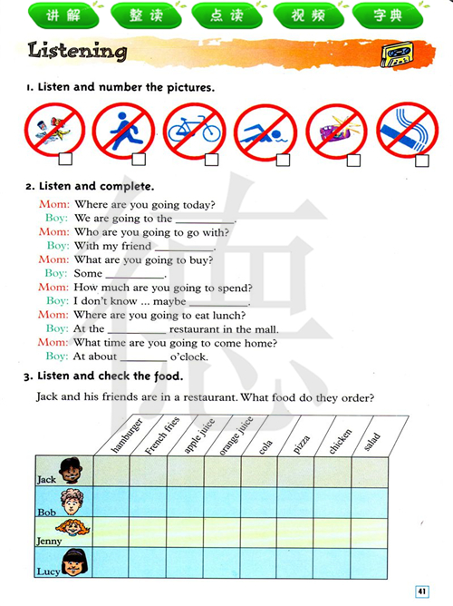 杰克和 他的朋友们在一家餐厅里,他们点了什么吃的?