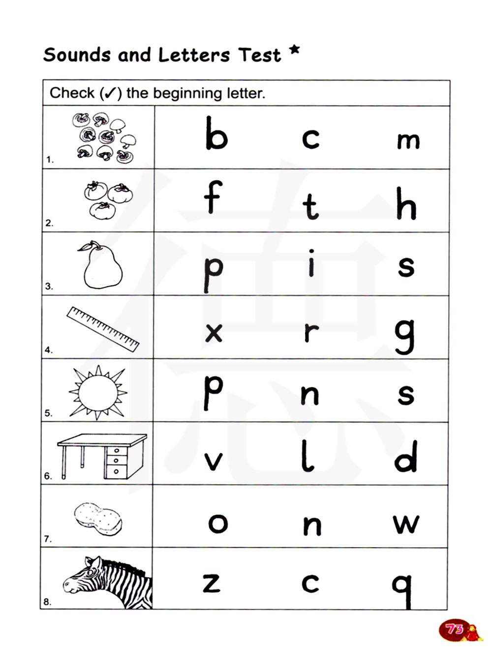 在单词正确的首字母上画勾