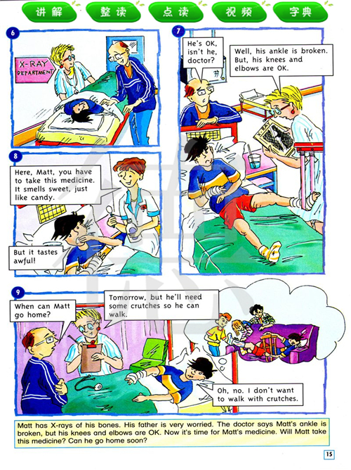 马特拍了X光片,他的父亲很担心,医生说马特的脚踝骨折了,但是他的膝盖和肘都很好,现在马特该吃药了,马特会吃这药吗?他很快就会回家吗?