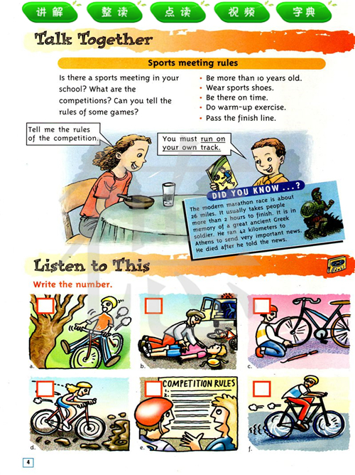 你知道……了吗?现代马拉松赛跑大约有26英里。人们通常要花两个多小时才能跑完全程。那是为了纪念一位伟大的古希腊士兵。他跑了42千米去雅典送非常重要的消息。他说完消息就死了。