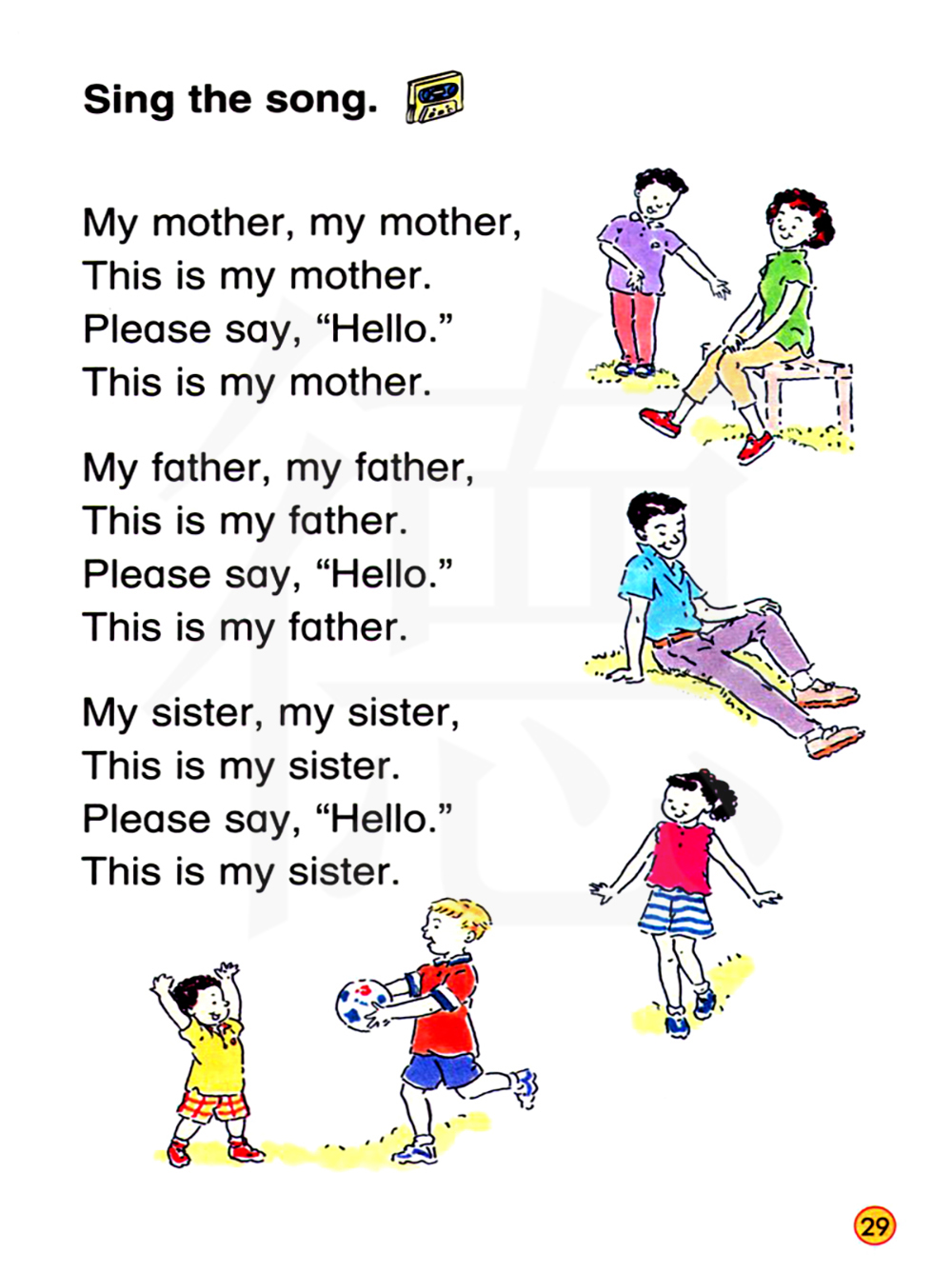 我的妈妈,我的妈妈,这是我的妈妈。请说,“你好。”这是我的妈妈。我的爸爸,我的爸爸,”这是我的爸爸。”请说,“你好。这是我的爸爸。我的姐姐,我的姐姐,”这是我的姐姐。 请说,“你好。这是我的姐姐。