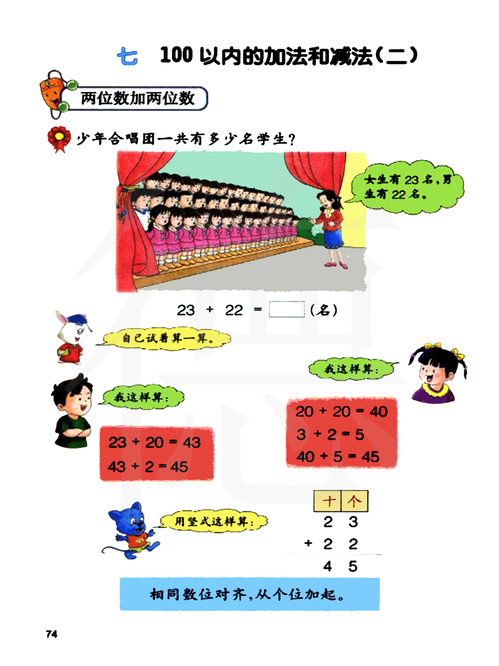 ①相同数位对齐,加号写在高位下行之前。