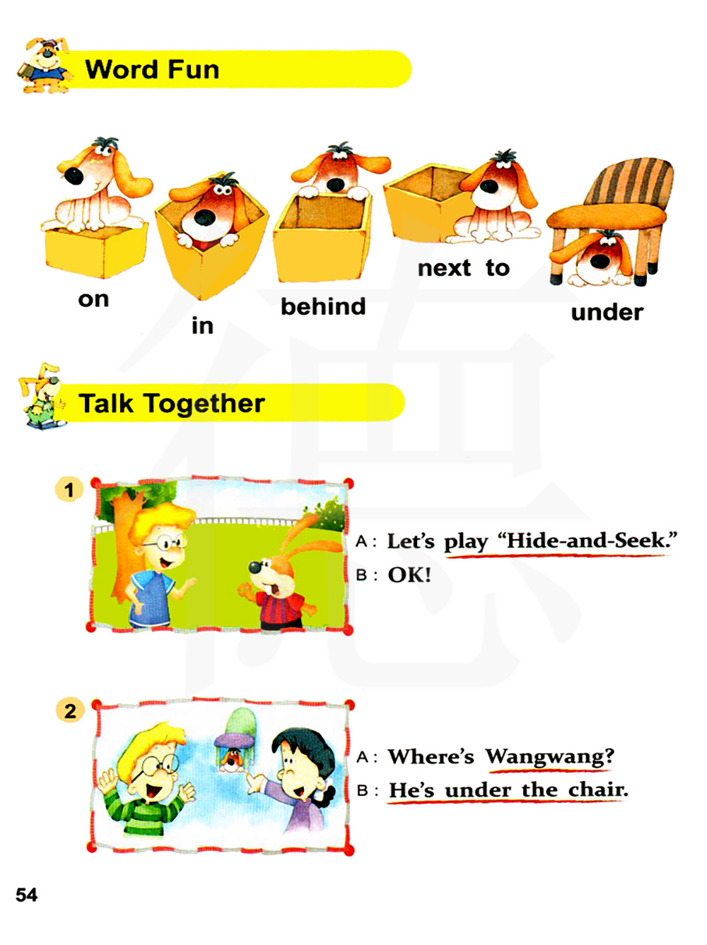汪汪在哪?他在椅子下面。