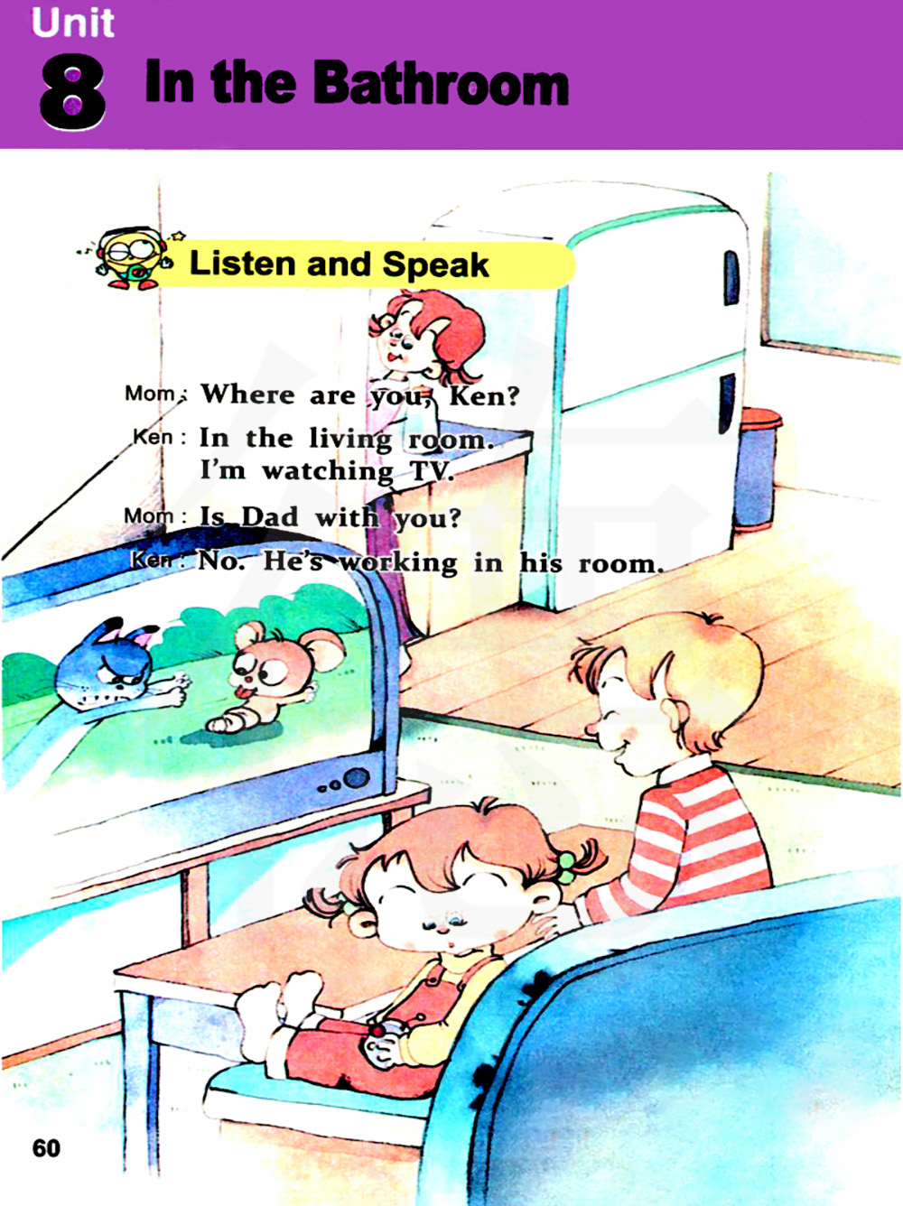 爸爸和你在一起吗? 不是。他在房间里工作。