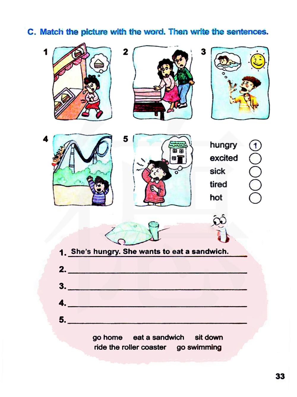C 将图片和单词进行配对。然后写出句子。