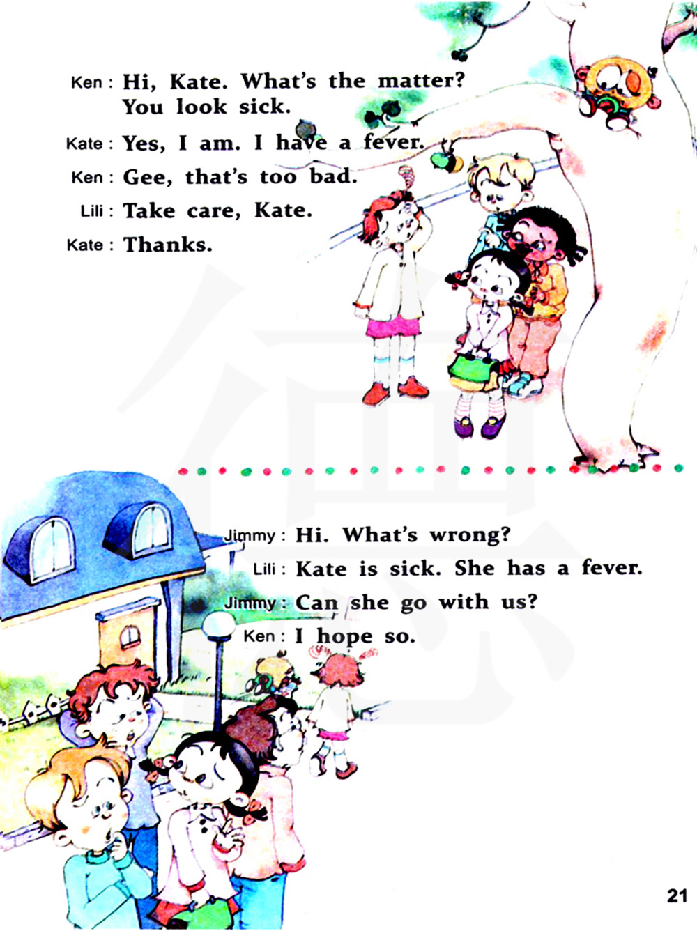 嗨。怎么了? 凯特生病了。她发烧了。