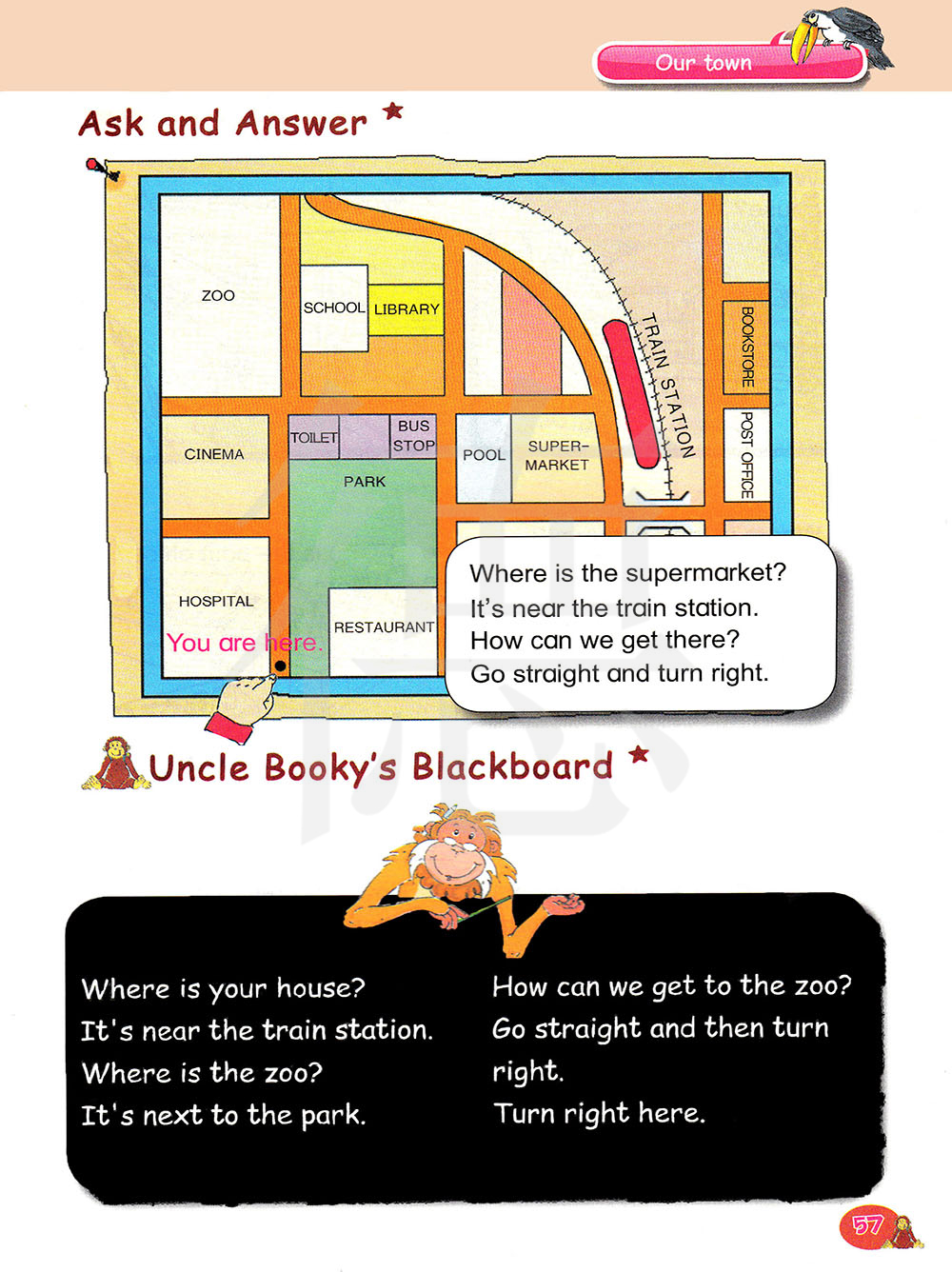 我们怎样去动物园?直走然后右转。