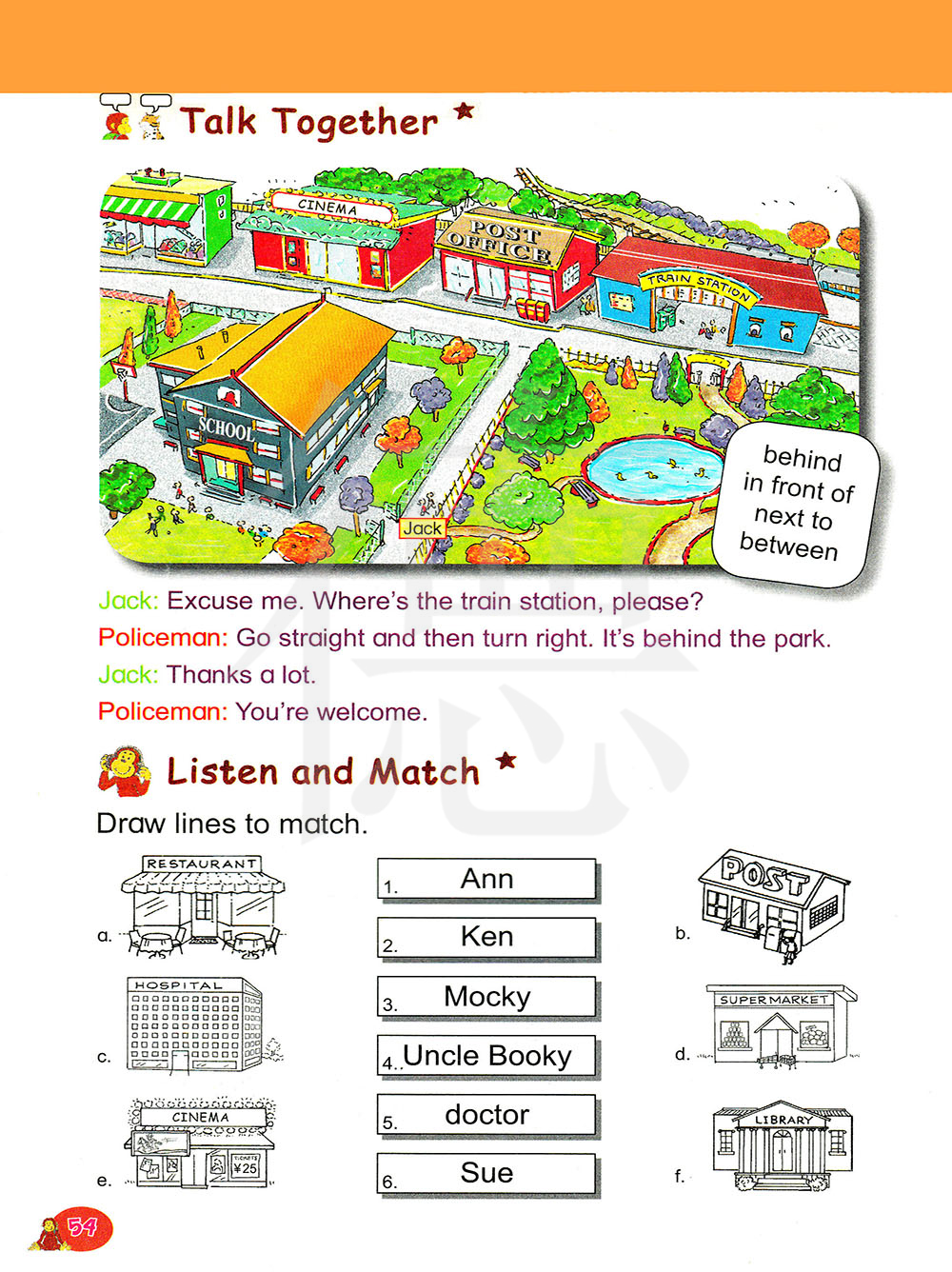 打扰了,请问火车站在哪里?直走然后右转,它在公园后面。