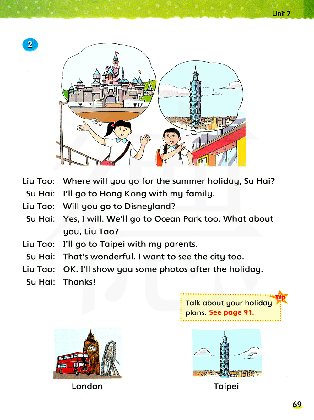 2. talk about their plans for the summer holiday 谈论他们的暑假计划 3. go back to London 回到伦敦 4. how long 多久 5. stay there 呆在那儿