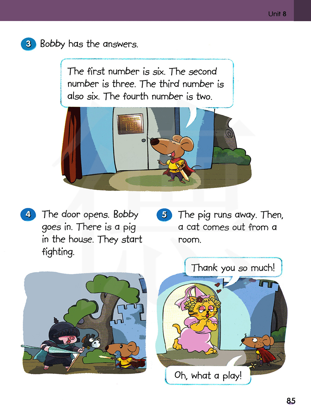 门打开了。波比进了门。波比看见房子里有一头猪,他们开始战斗。