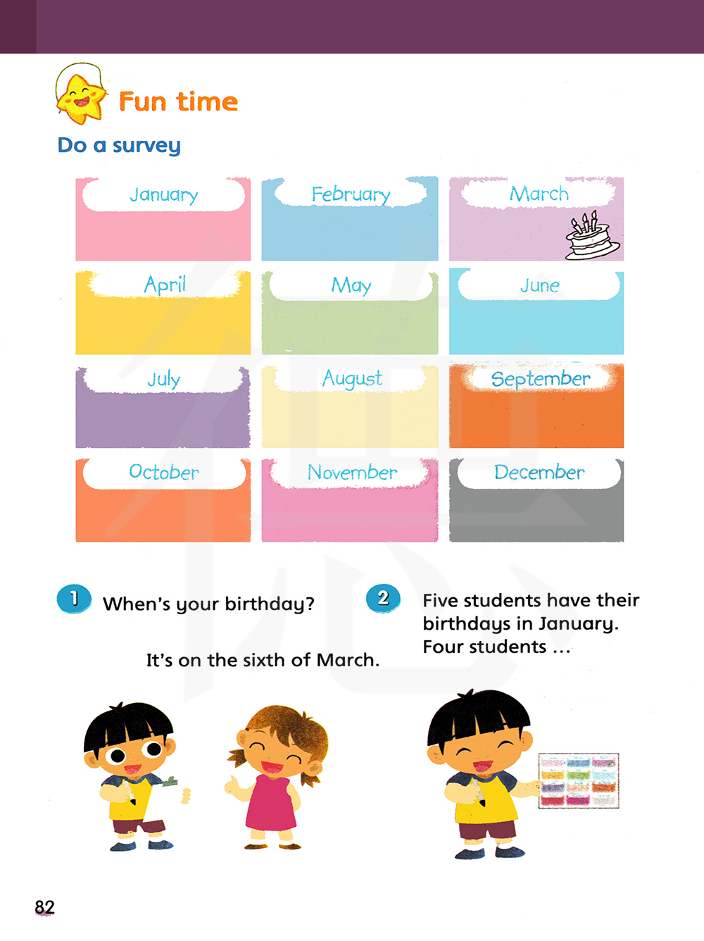 五名学生生日是在一月份。四名学生……