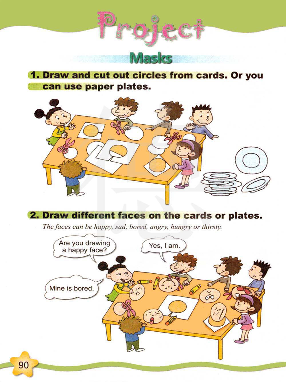 在卡片或纸板上画不同的脸。