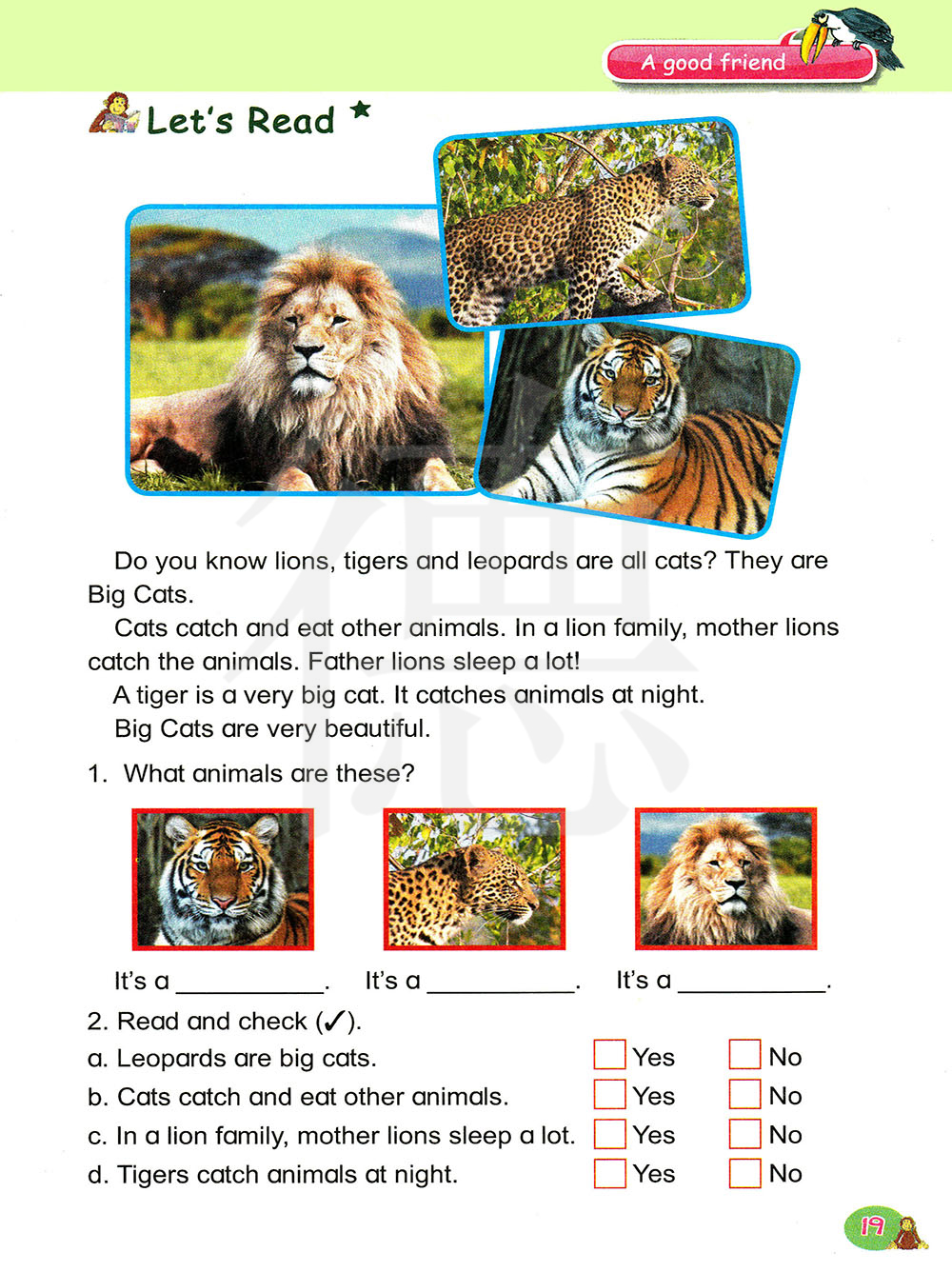 你知道狮子、老虎和豹子都是猫科动物吗?它们是大猫。