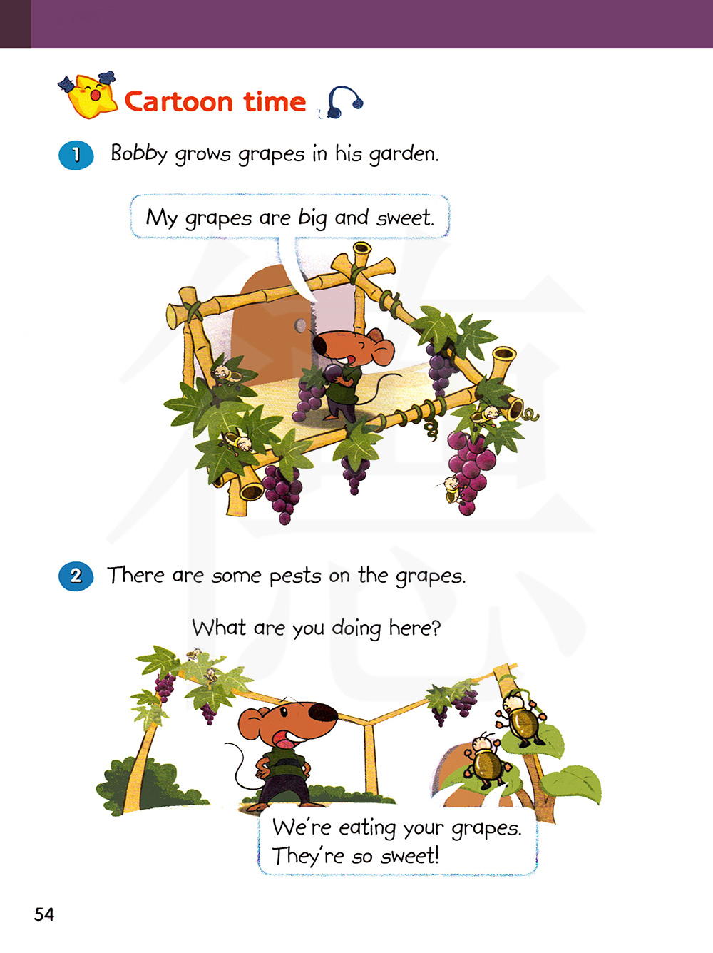 我们正在吃你的葡萄。葡萄真甜!